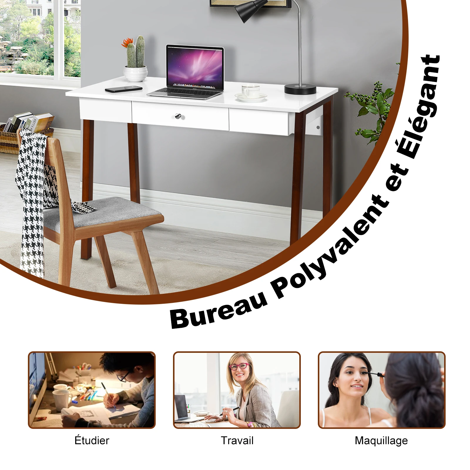 Desk with Drawer, Small Computer table dressing table wood table office table for office Study, White/Brown
