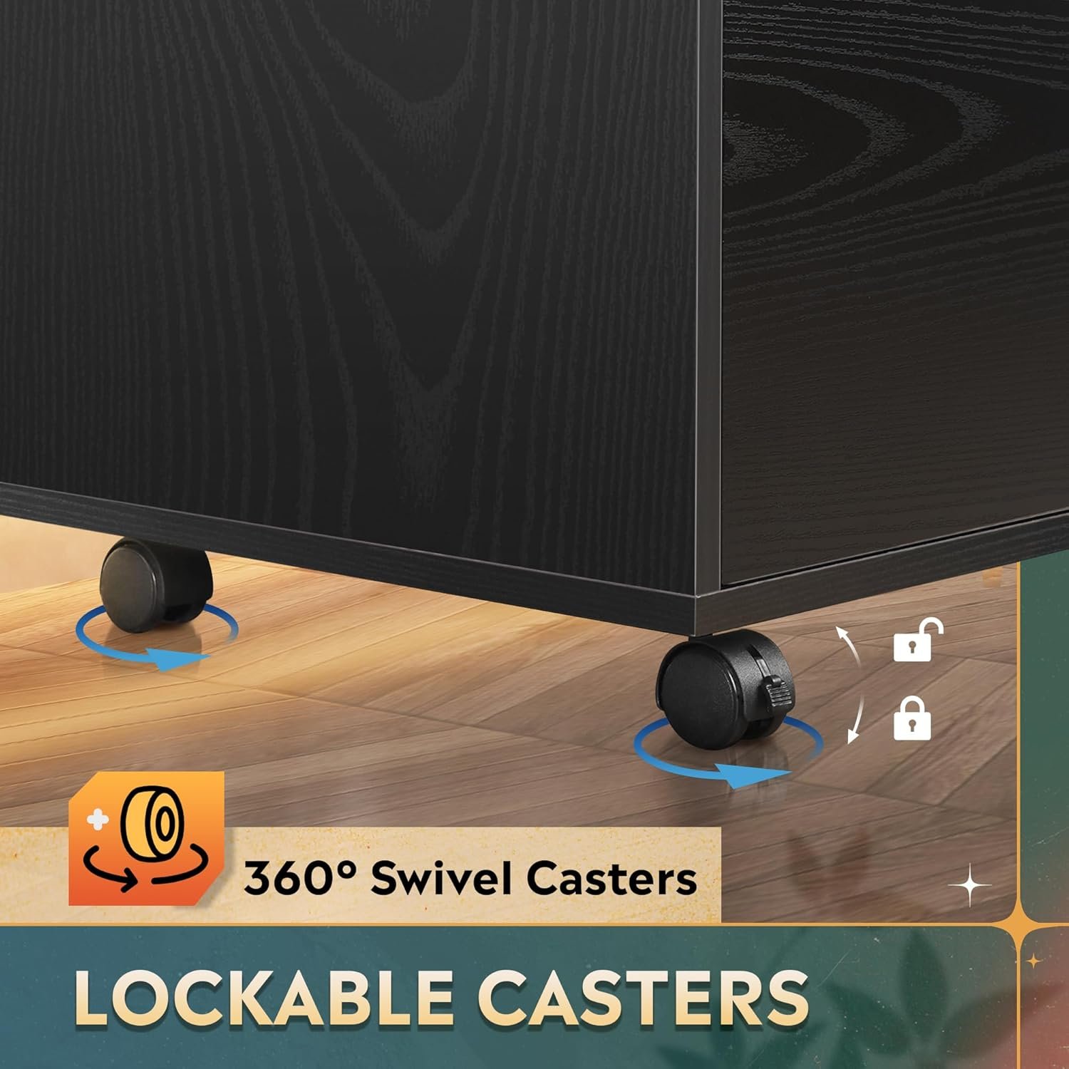 Easy Mobility: The wooden file cabinet is equipped with four rolling wheels, allowing it to be easily moved and positioned beside or under a desk. The front two wheels have built-in brakes to keep the cabinet stable.