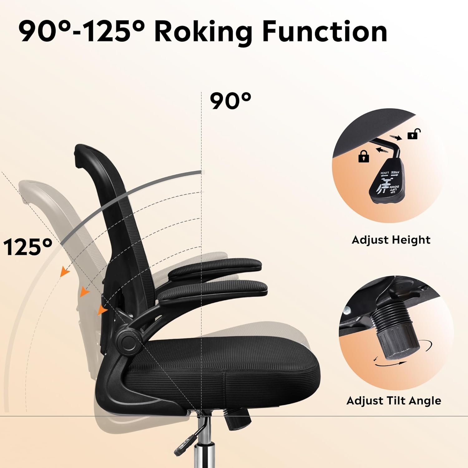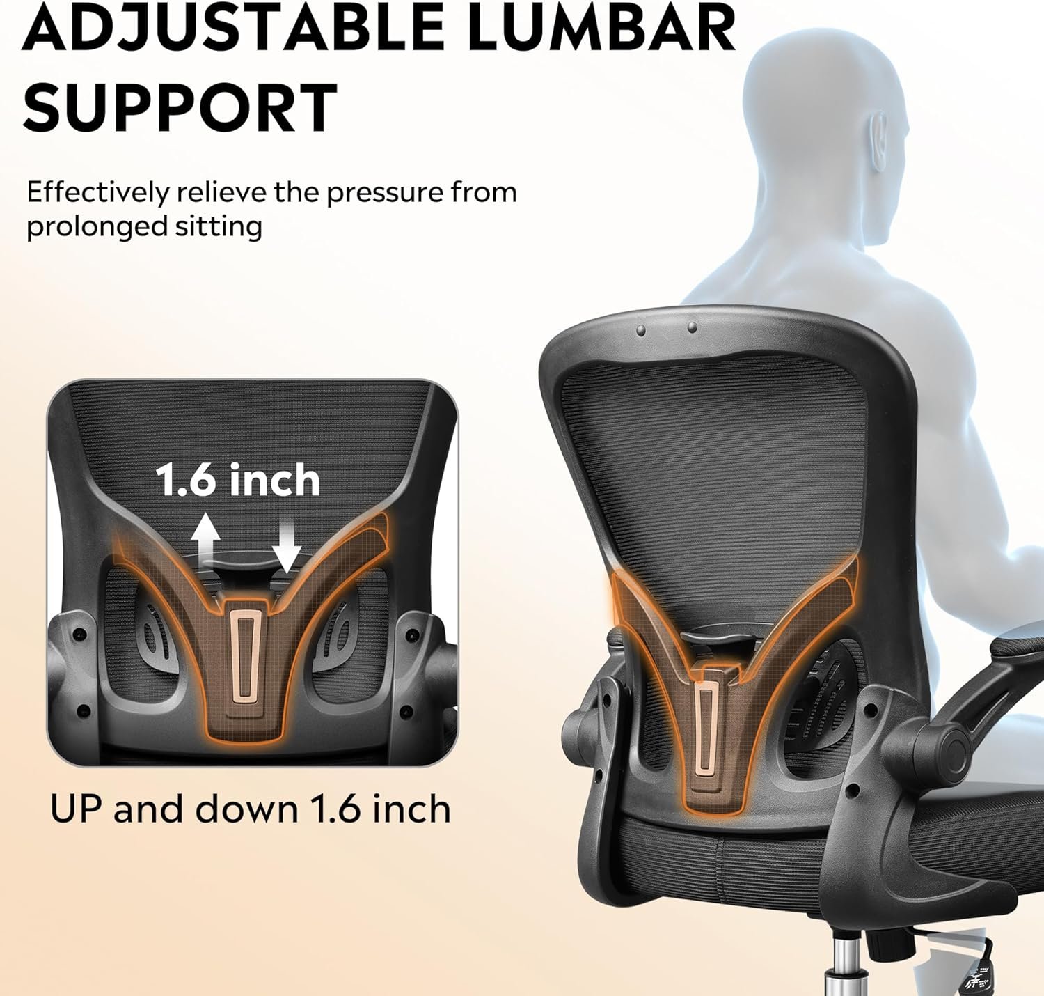 DEVAISE Office Chair, Ergonomic Computer Desk Chair with Flip-up Armrests, Comfy Mesh with Adjustable Lumbar Support, Black
