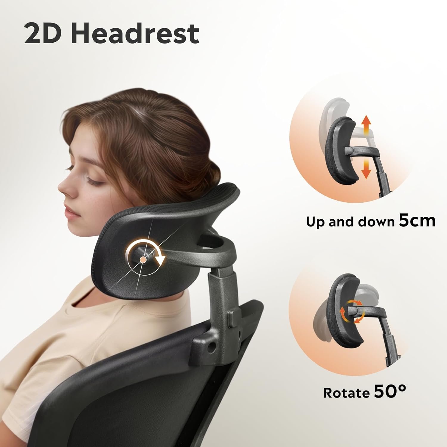 Ergonomic Support for Head, Neck, Lumbar, and Arms: This office chair is designed with an ergonomic backrest and a 50° adjustable headrest that fits the curve of your neck for targeted support. The adjustable lumbar support helps avoid lower back strain and discomfort while improving posture, effectively reducing fatigue in the neck and back—even during extended work hours.