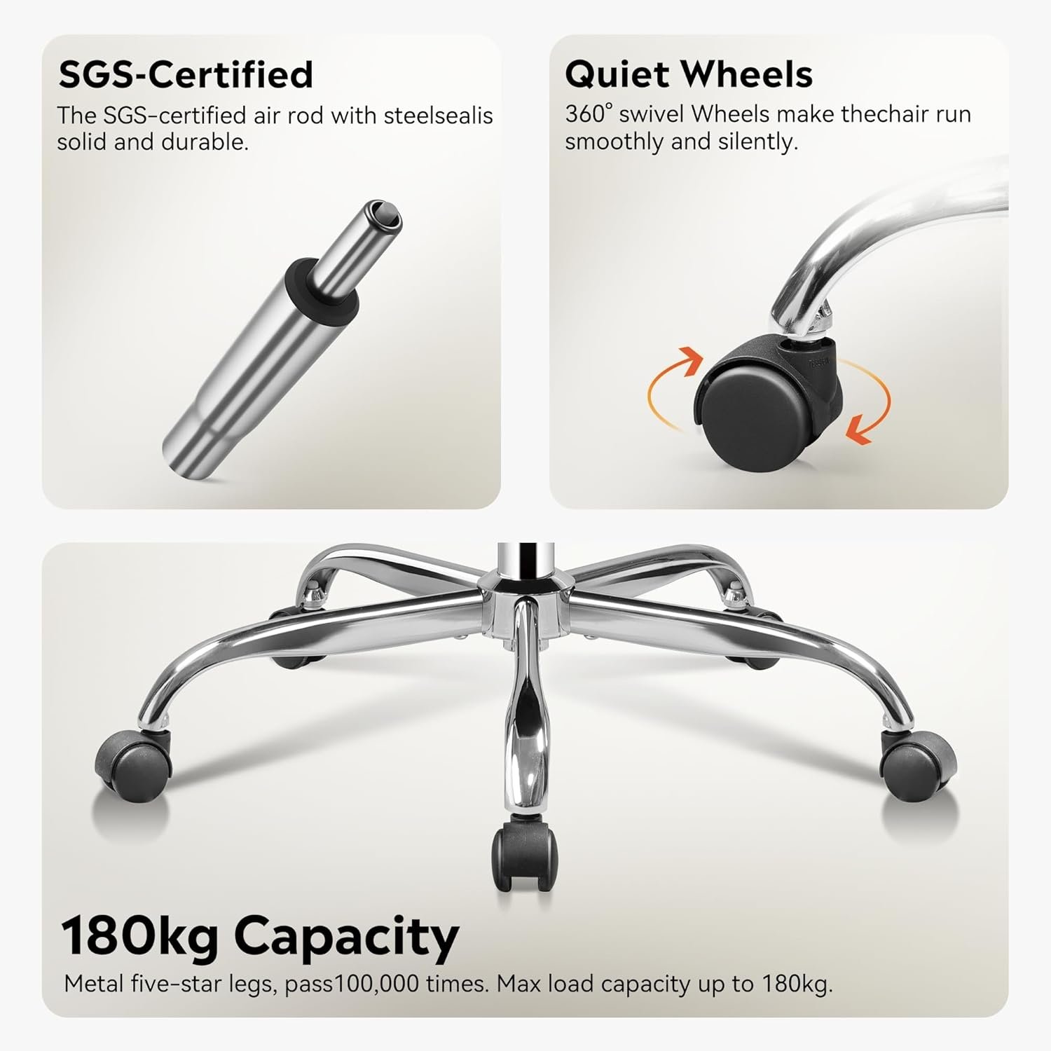 High-Quality Construction for Durability and Stability: Constructed with a sturdy iron base and durable casters, the chair supports up to 300 lbs. The BIFMA-tested casters provide smooth mobility across various surfaces, while the robust base ensures stability and long-term use, making it a reliable choice for both home and office settings.