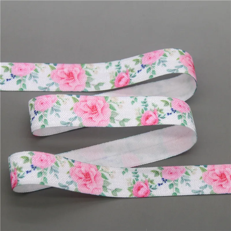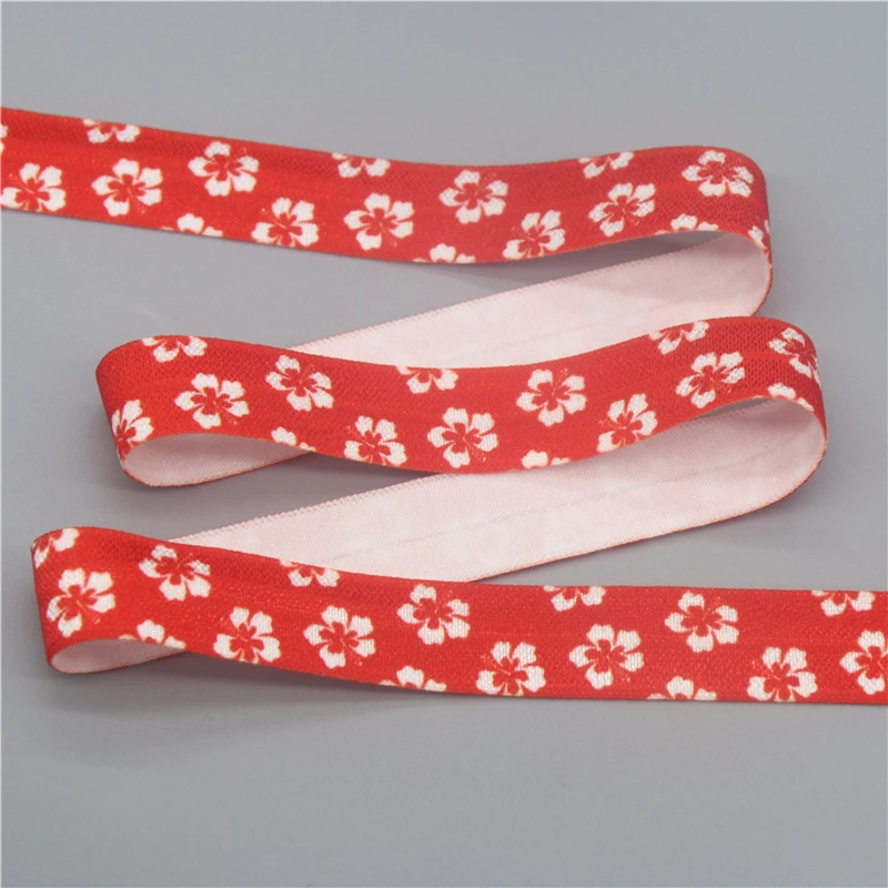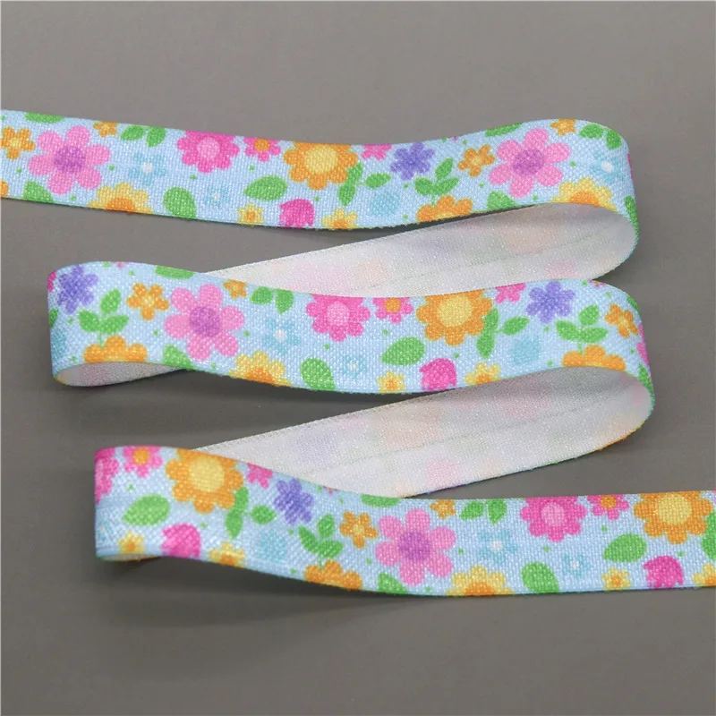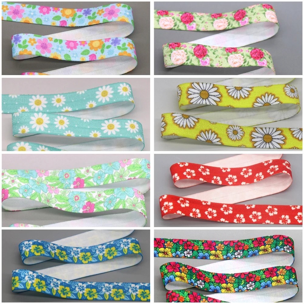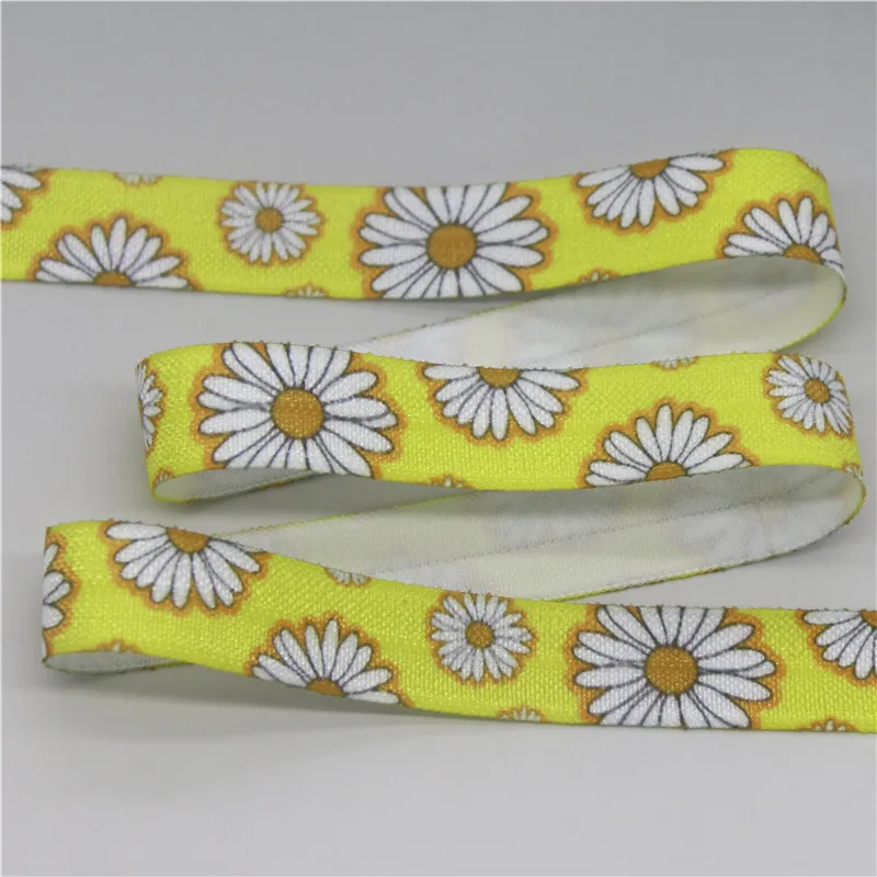 DHK 5/8” 5yards Flower Chrysanthemum Sunflower Hawaii Printed Fold Elastic FOE Stretch Ribbon Hairbow Headband DIY C1920