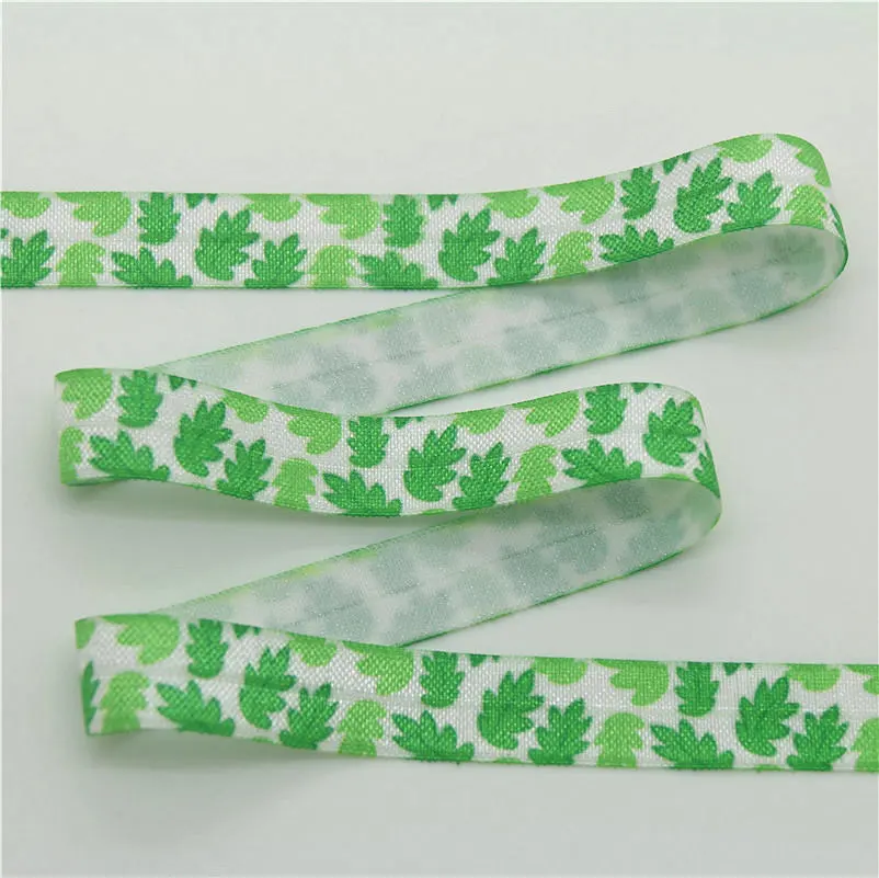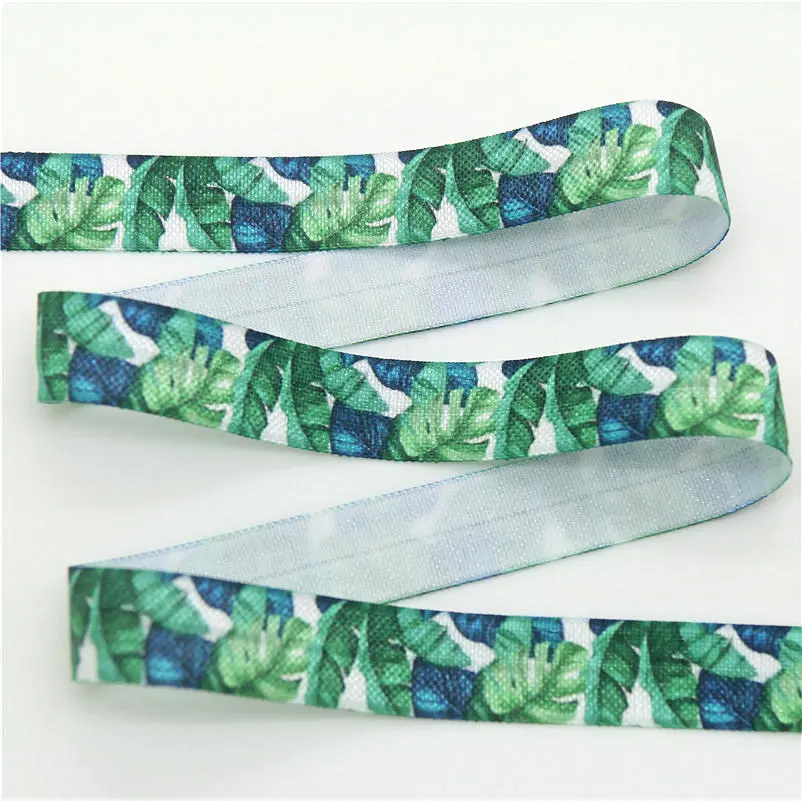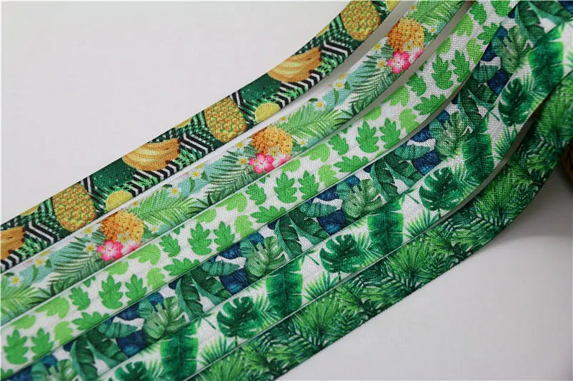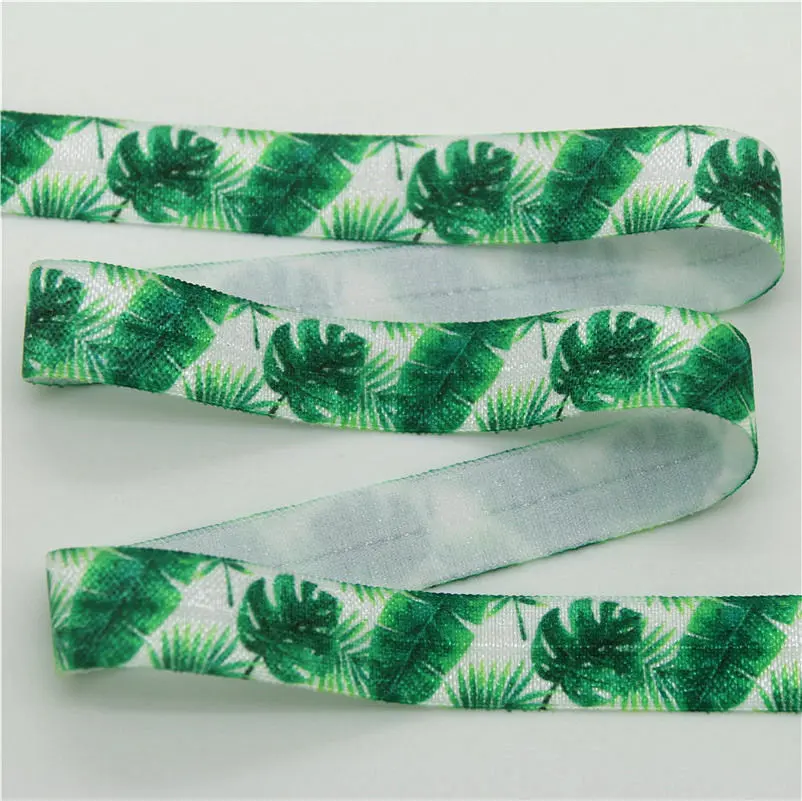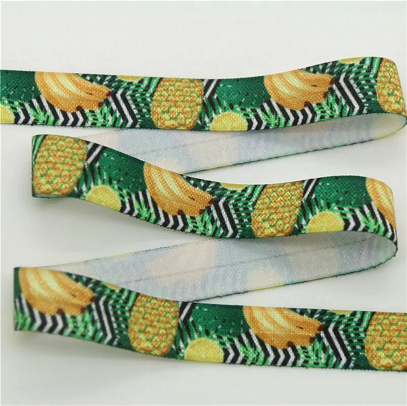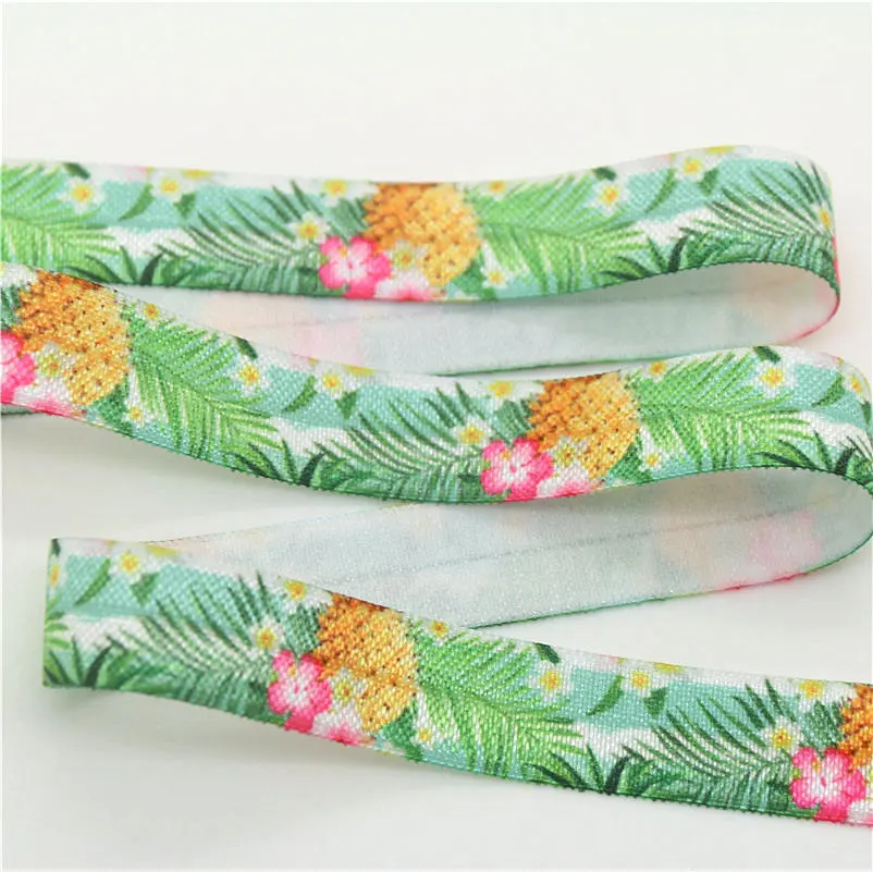 DHK 5/8” 5yards pineapple tropical leaf printed Fold Elastic FOE stretch ribbon hairbow headwear headband DIY Wholesale C1538