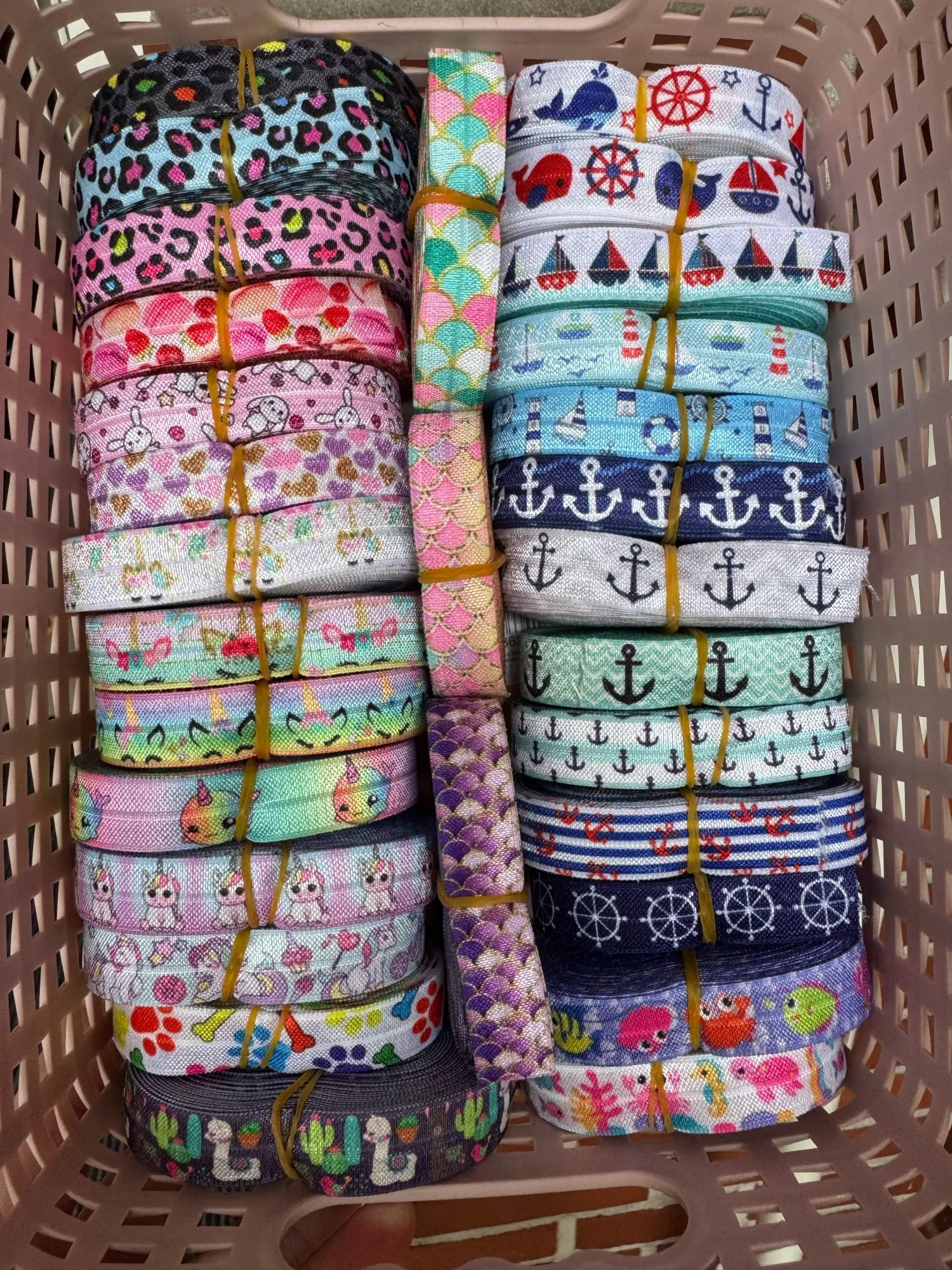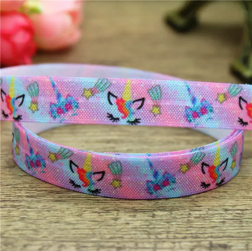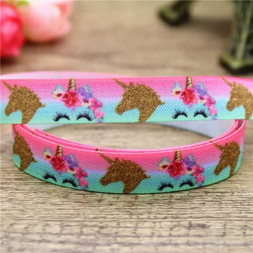 DHK 5/8” 5yards Unicorn Elephant Alpaca Printed Fold Elastic FOE Headband Headwear Hairband DIY Decoration OEM C548