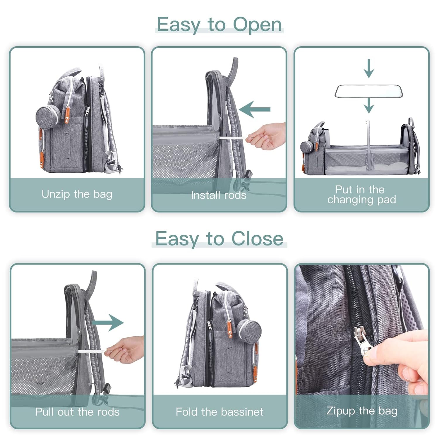 Diaper Bag Backpack – This diaper bag backpack with changing pad enables parents convert any safe space into a changing area, allowing to change diapers at any time.