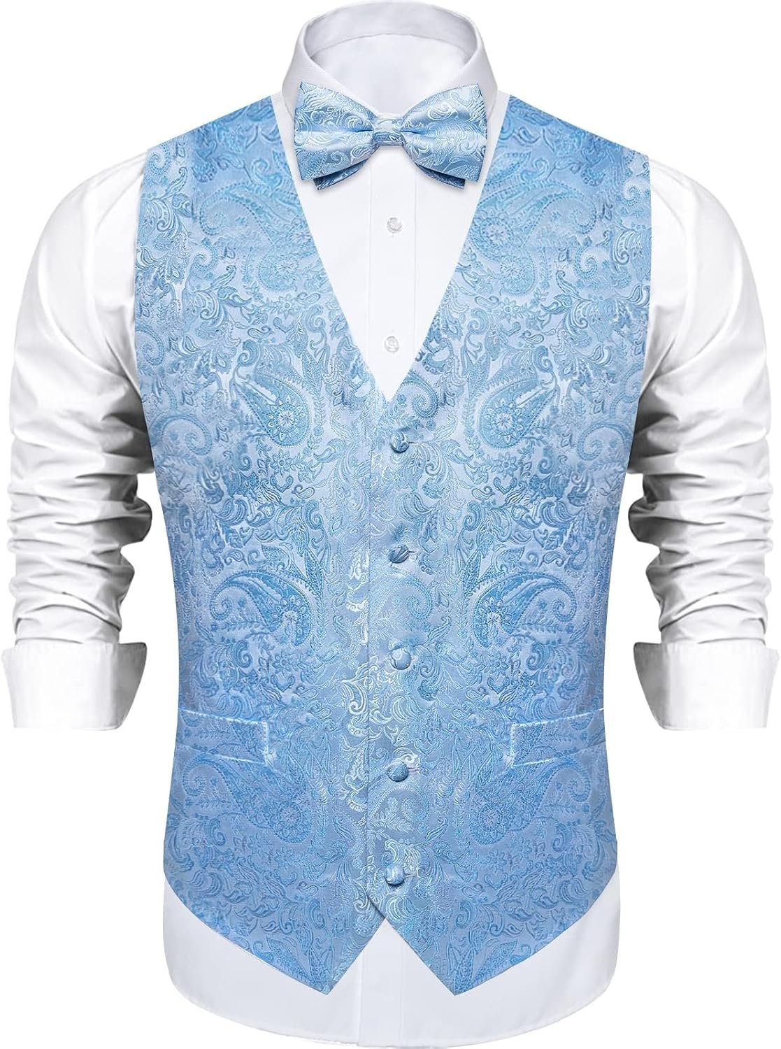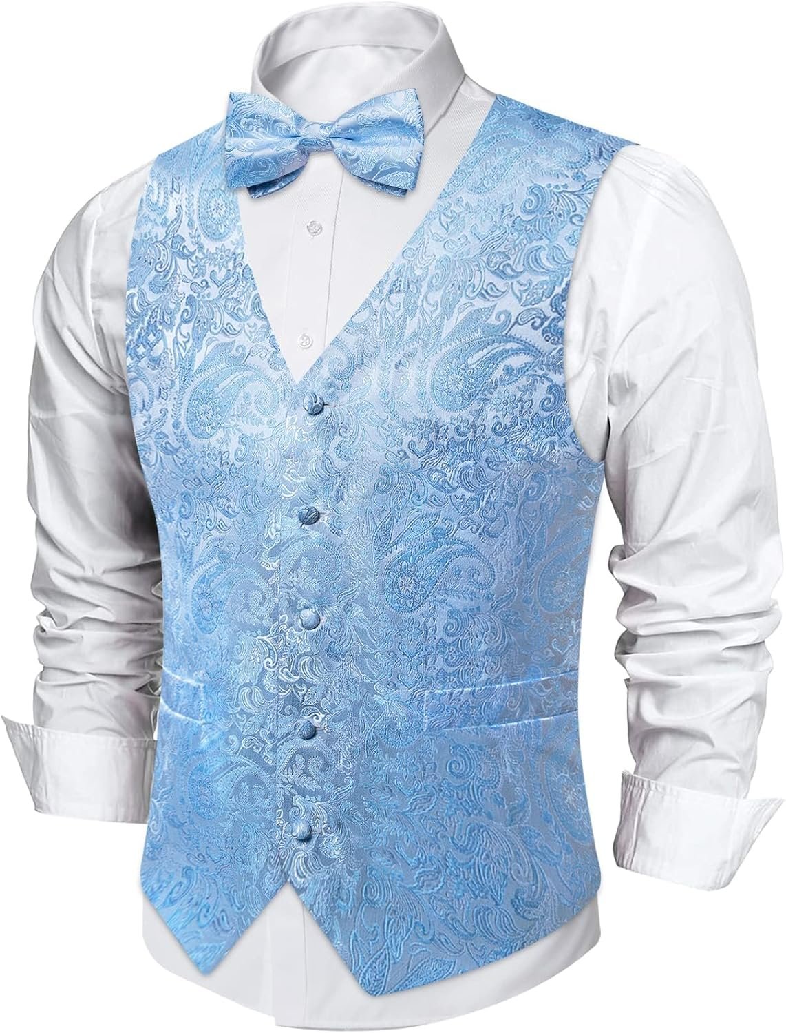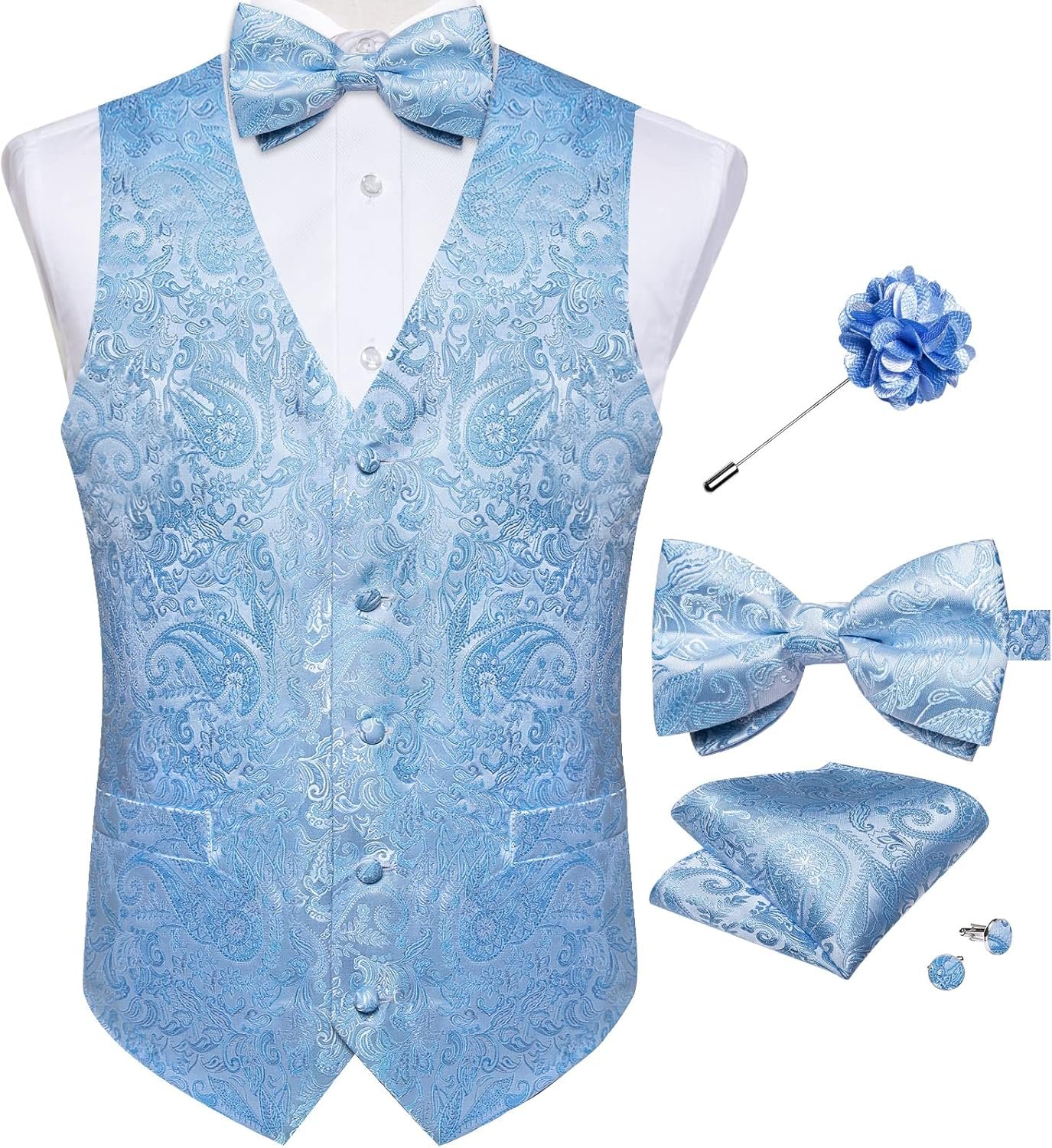 DiBanGu Mens Paisley Suit Waistcoat,Silk Dress Vest and Bowtie Pocket Square Cufflinks with Lapel Pin Set for Wedding Tuxedo