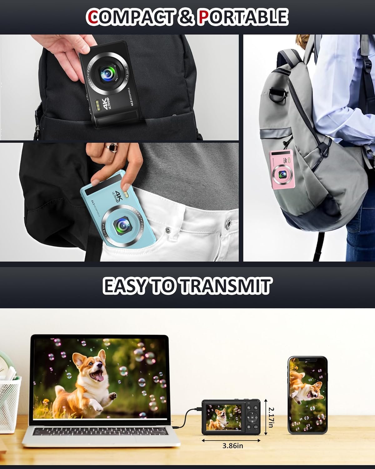 🎁【Easy to Operate & Perfect Gift】Designed for effortless use, this mini camera meets the daily photography needs of of all ages. Its intuitive buttons and simple menus ensure capturing every moment is as easy as pressing a button. It’s a thoughtful gift for teen boys, girls, parents, or anyone who loves photography, making a delightful surprise for birthdays, Christmas, or any special occasion
