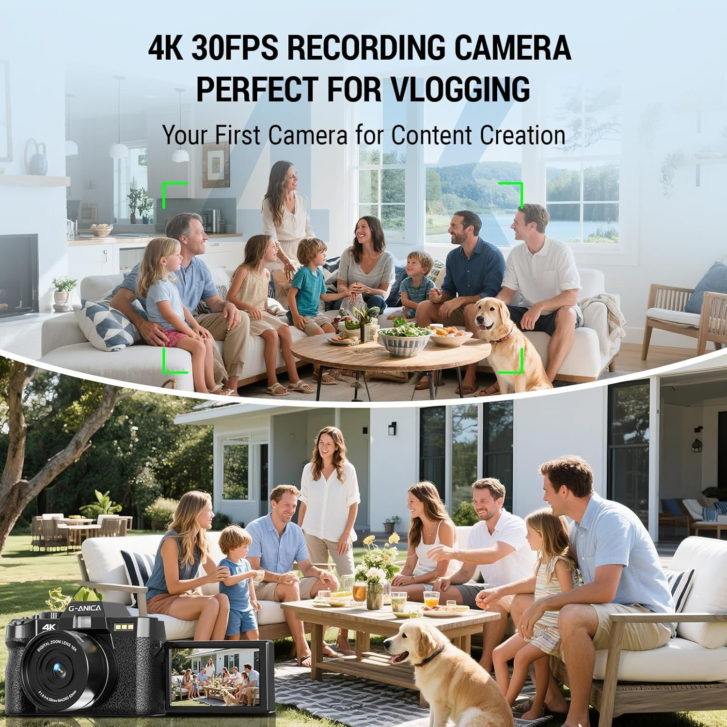 【4K Ultra HD with 16X Zoom】Shoot stunning 4K videos and 48MP photos with fast autofocus. 16X digital zoom keeps distant subjects clear – perfect for vacations, events, and wildlife.