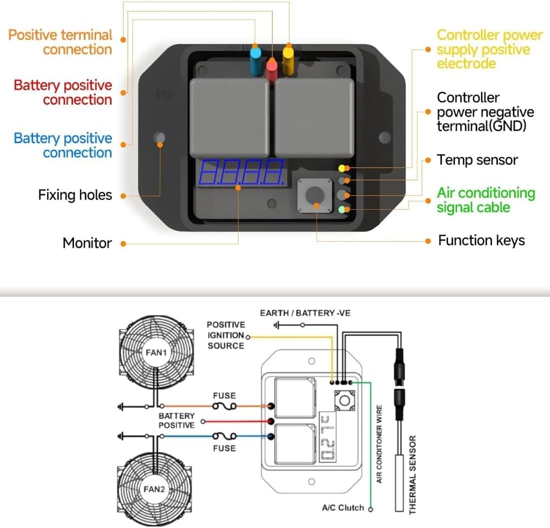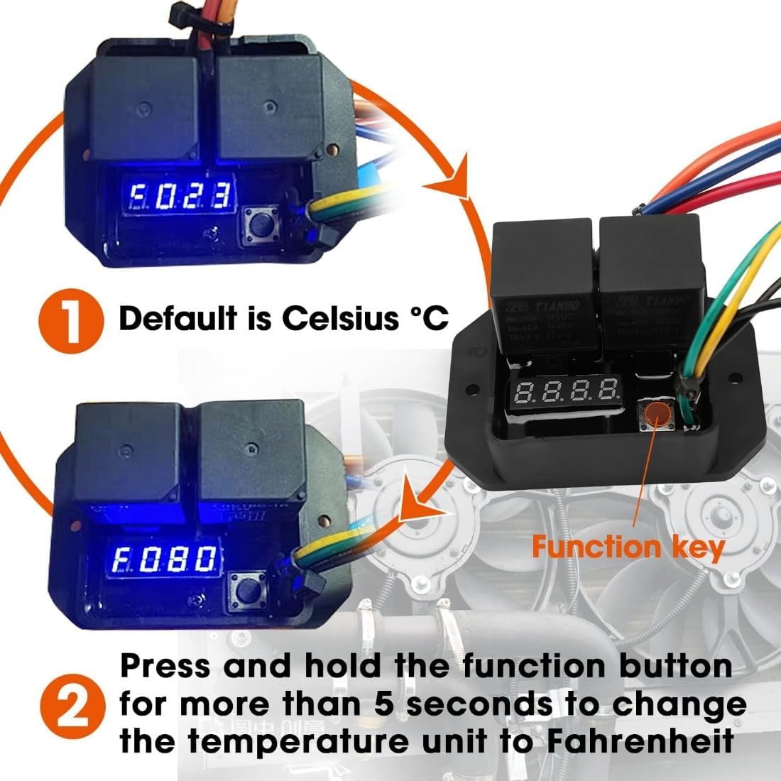 Digital Radiator Fan Controller Switch 12V/24V, Adjustable Temperature Range Thermatic Cooling Kit for Cars, Trucks, RVs, Boats & Industrial Equipment