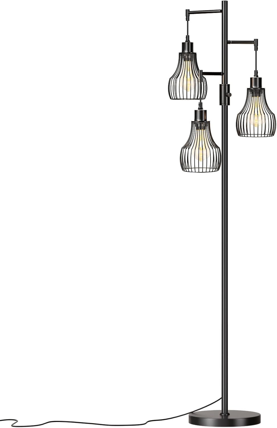 Dimmable Floor Lamp, 3 x 800LM LED Edison Bulbs Included, Farmhouse Industrial Floor Lamp Standing Tree Lamp with Elegant Cage Tall Lamps for Living Room Bedroom Office – Black