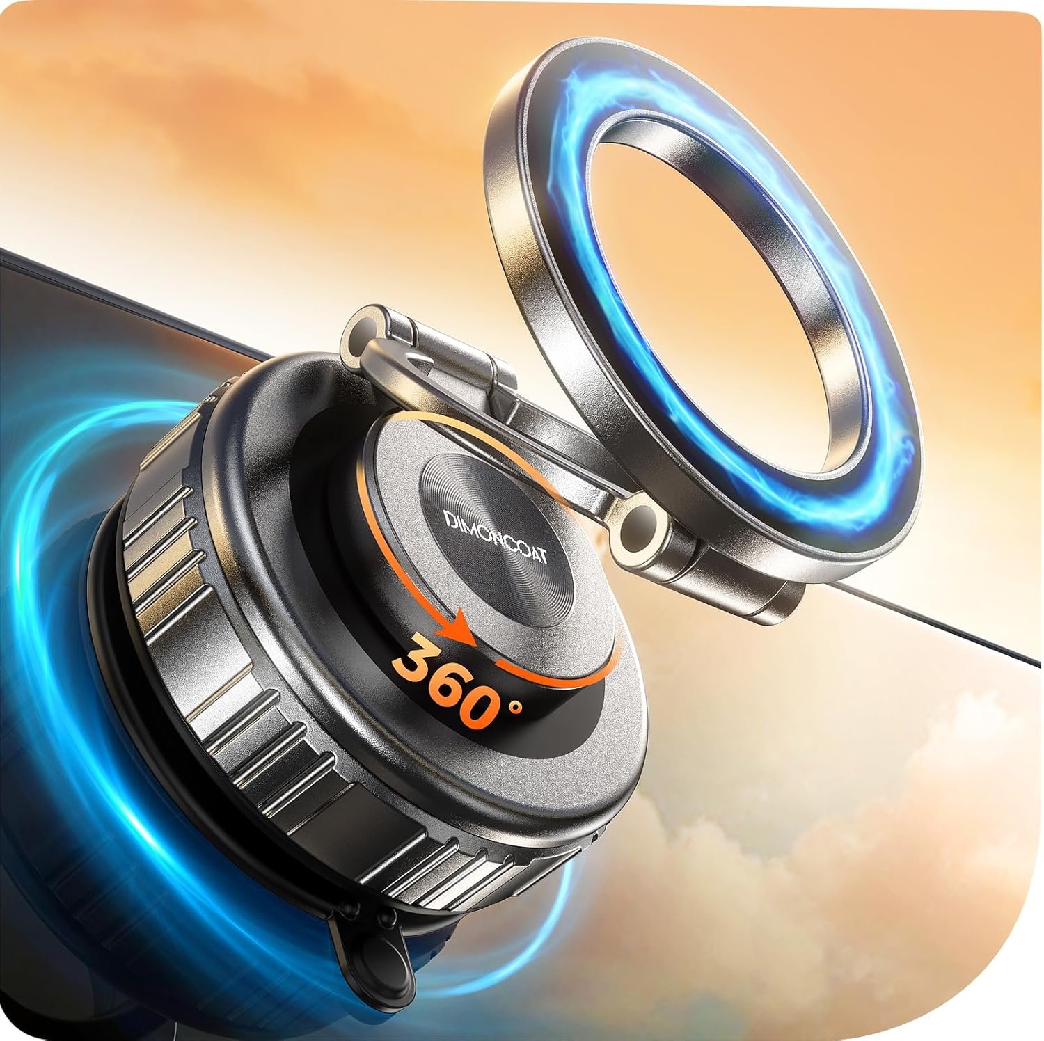 DIMONCOAT 2025 Upgraded Metal 360° Adjustable Vacuum Suction Cup Phone Mount [109LB Suction], Magnetic Phone Holder for Car, Foldable Portable iPhone Holder Magsafe Car Mount for iPhone 16 Pro Max