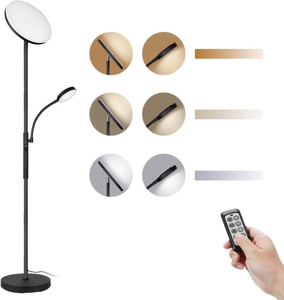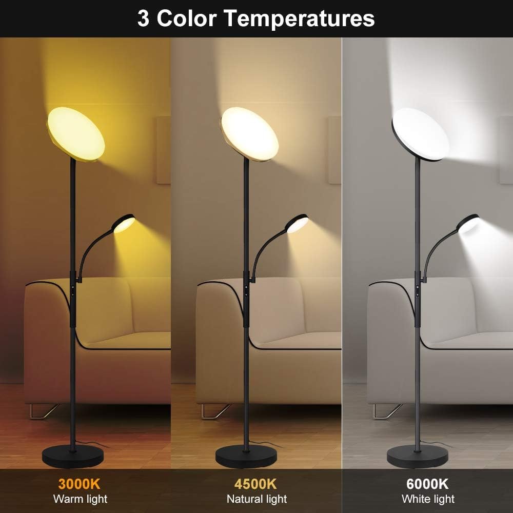 Dimunt Floor Lamp LED Floor Lamps for Living Room Bright Lighting, 27W/2000LM Main Light and 7W/350LM Side Reading Lamp, Adjustable 3 Colors Tall Lamp with Remote & Touch Control