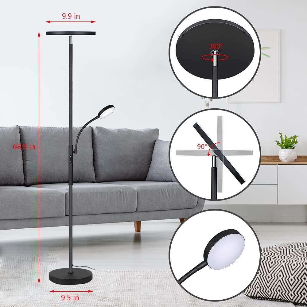 【MOTHER DAUGHTER FLOOR LAMP】 This modern floor lamp comes with mother daughter lamp heads with different functions. The 27W main lamp effortlessly brightens up the entire space, the 7W side lamp with flexible neck can be freely adjusted up and down within a certain distance, perfect for any task, such as reading, working or sewing. Perfect for friends, grandmas, Mother’s Day gifts