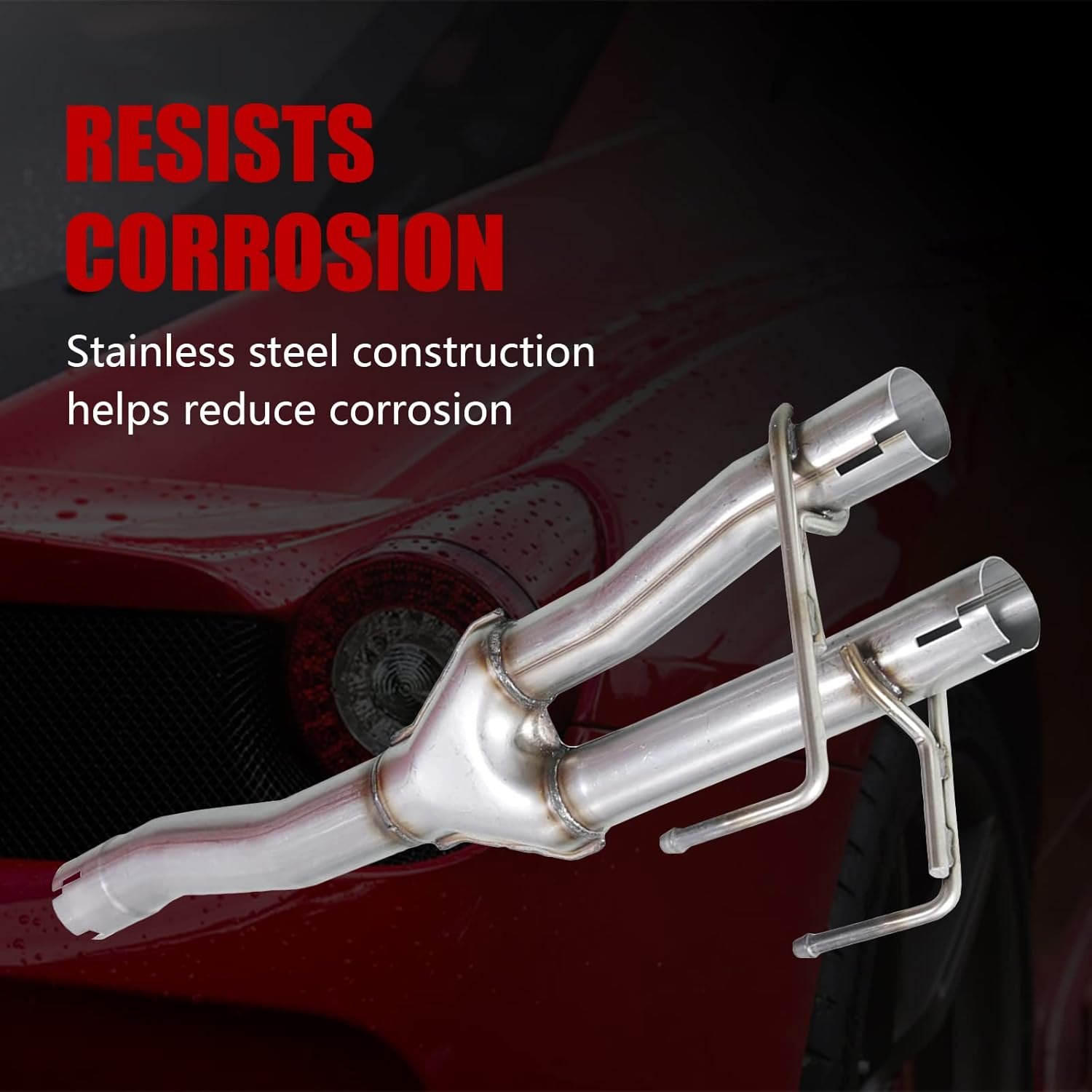 HIGH QUALITY: Internal partition wall and high quality material make dual exhaust muffler y-pipe have high temperature resistance,Constructed with Stainless Steel structure clamp provide stability and longer service life of the muffler.