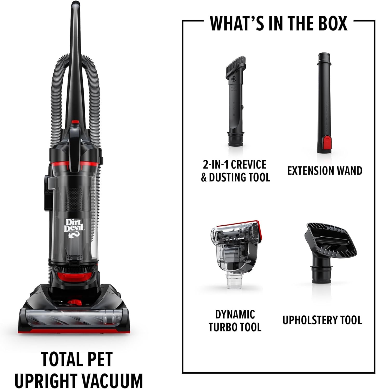Dirt Devil Multi-Surface Total Pet+ Upright Bagless Vacuum Cleaner for Carpet and Hard Floor, with Pet Tool Kit, Powerful, Lightweight, Corded Vacuum Cleaners for Home Use