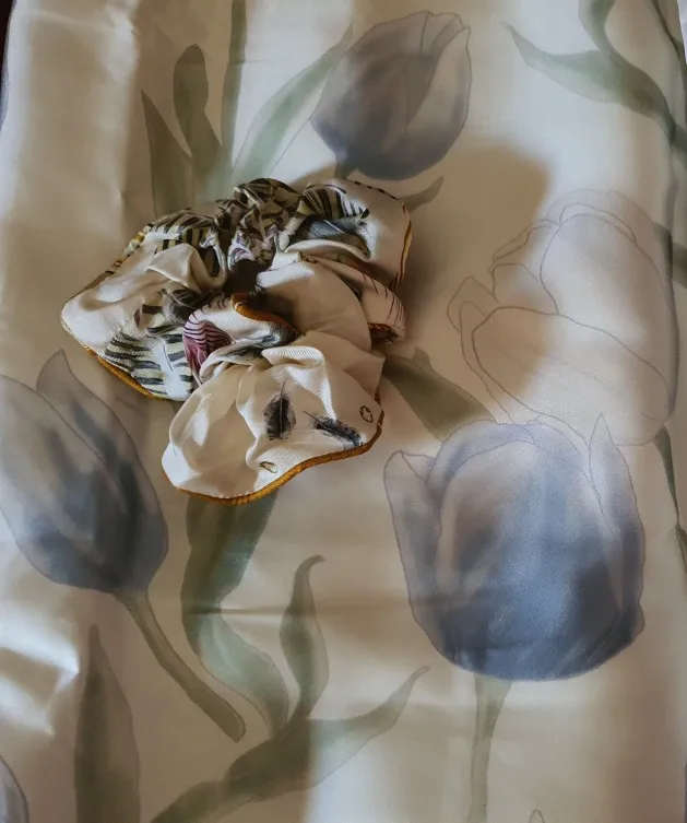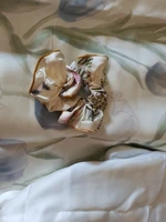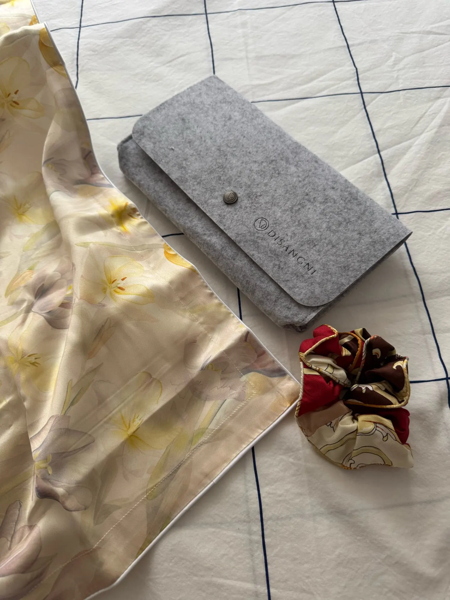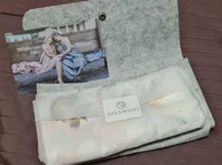 The pillowcase is wonderful, medium-density silk. Thanks to the seller for the packaging; it’s nice that it’s not in a bag but in a felt pocket with a button.