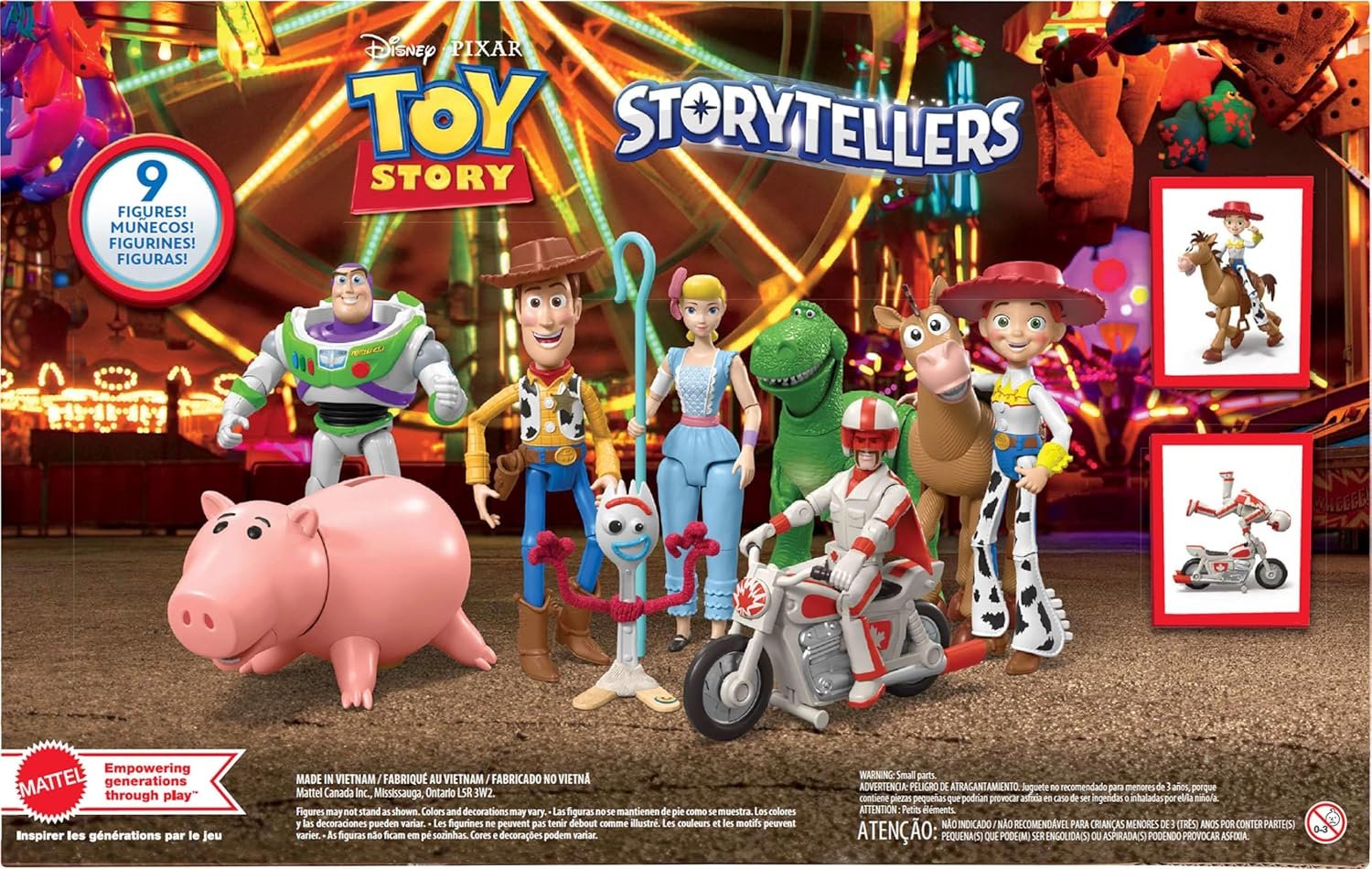 Bring home the wonder of Disney and Pixar’s Toy Story with this Storytellers Carnival Crew pack with 6 posable action figures and a motorcycle for play right away! All their favorite characters, all in one box!