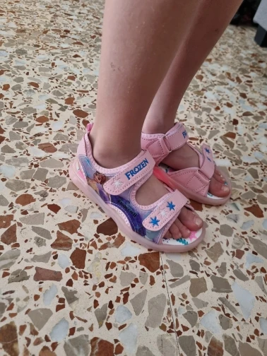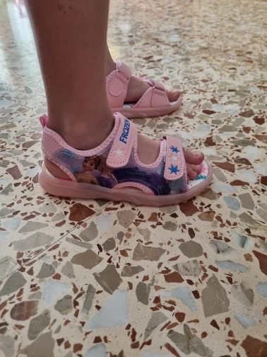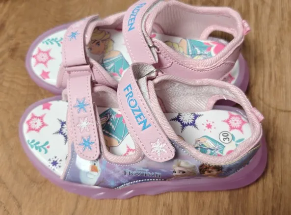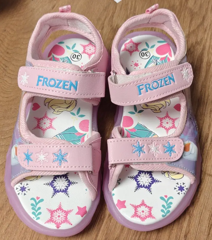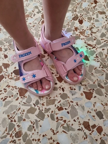 Good afternoon. The sandals arrived just like in the photo. The lights are flashing, everything is fine. But I am deducting 1 star for the quality of these sandals. These are still children’s shoes; children’s feet grow, and it’s very important what they wear. There is no arch support which is made in almost 99% cases and the foot is very stiff. Well, a child’s foot shouldn’t have such an inflexible sole. This growth spurt can cause damage and increases the likelihood of developing flat feet. So unfortunately, it’s a pity, but for a holiday for 1 hour, visiting, for a birthday, for a children’s party, not everyday – yes, perfectly fine! Moreover, I chose them because my daughter simply loves the cartoon “Frozen”. Children absolutely love clothes and shoes from their favorite characters. In any case, thank you.
