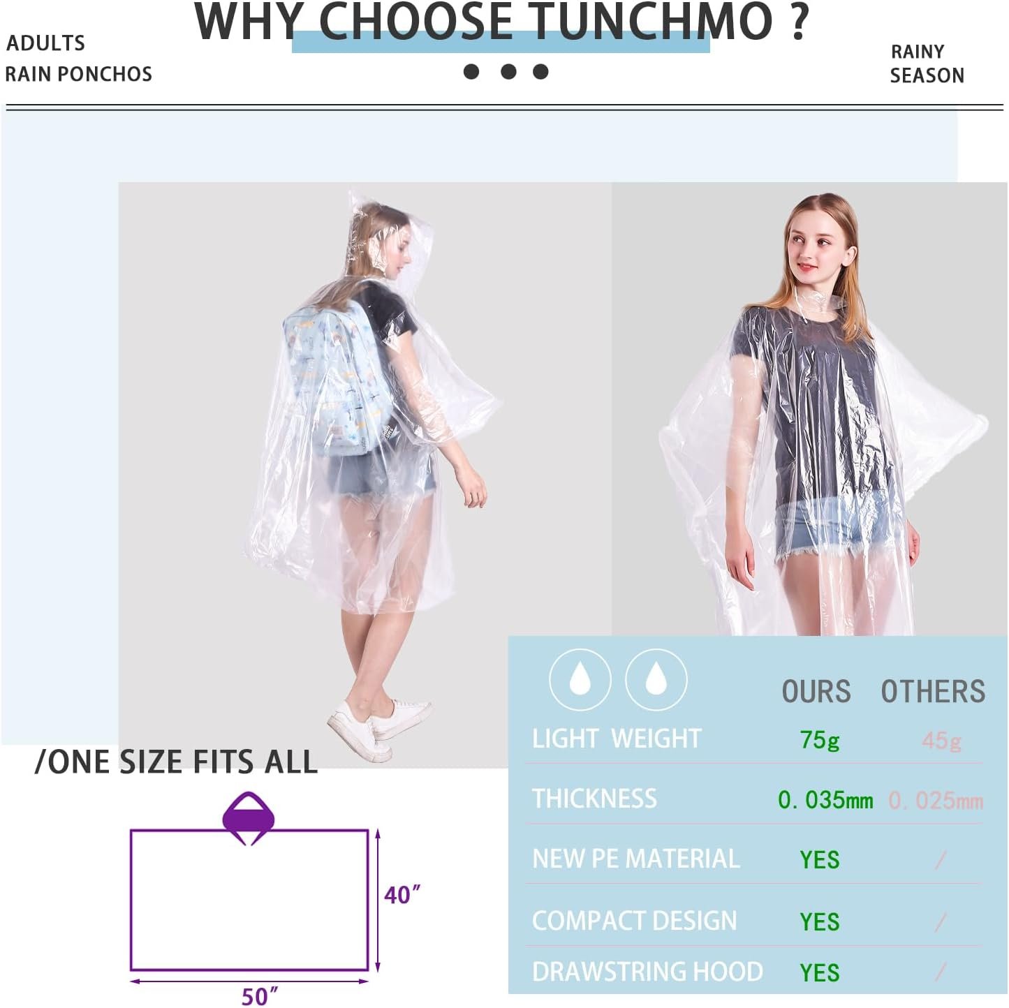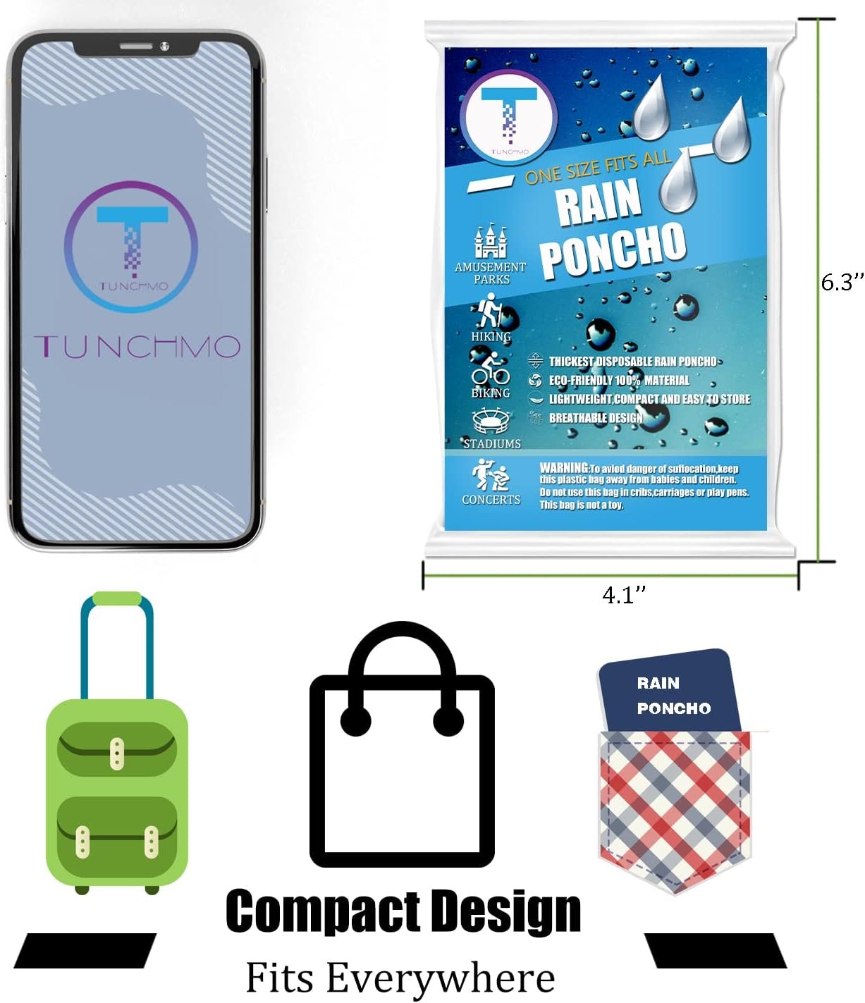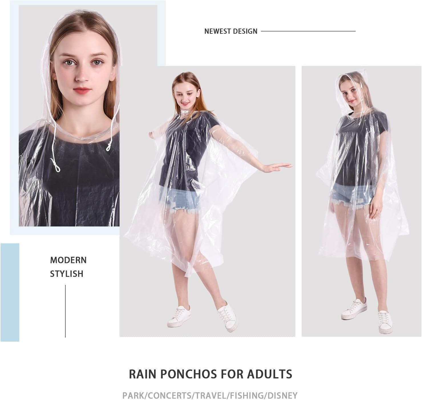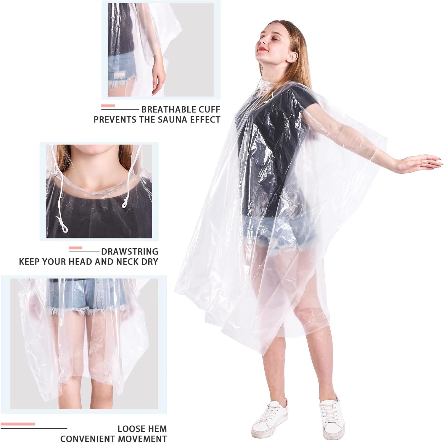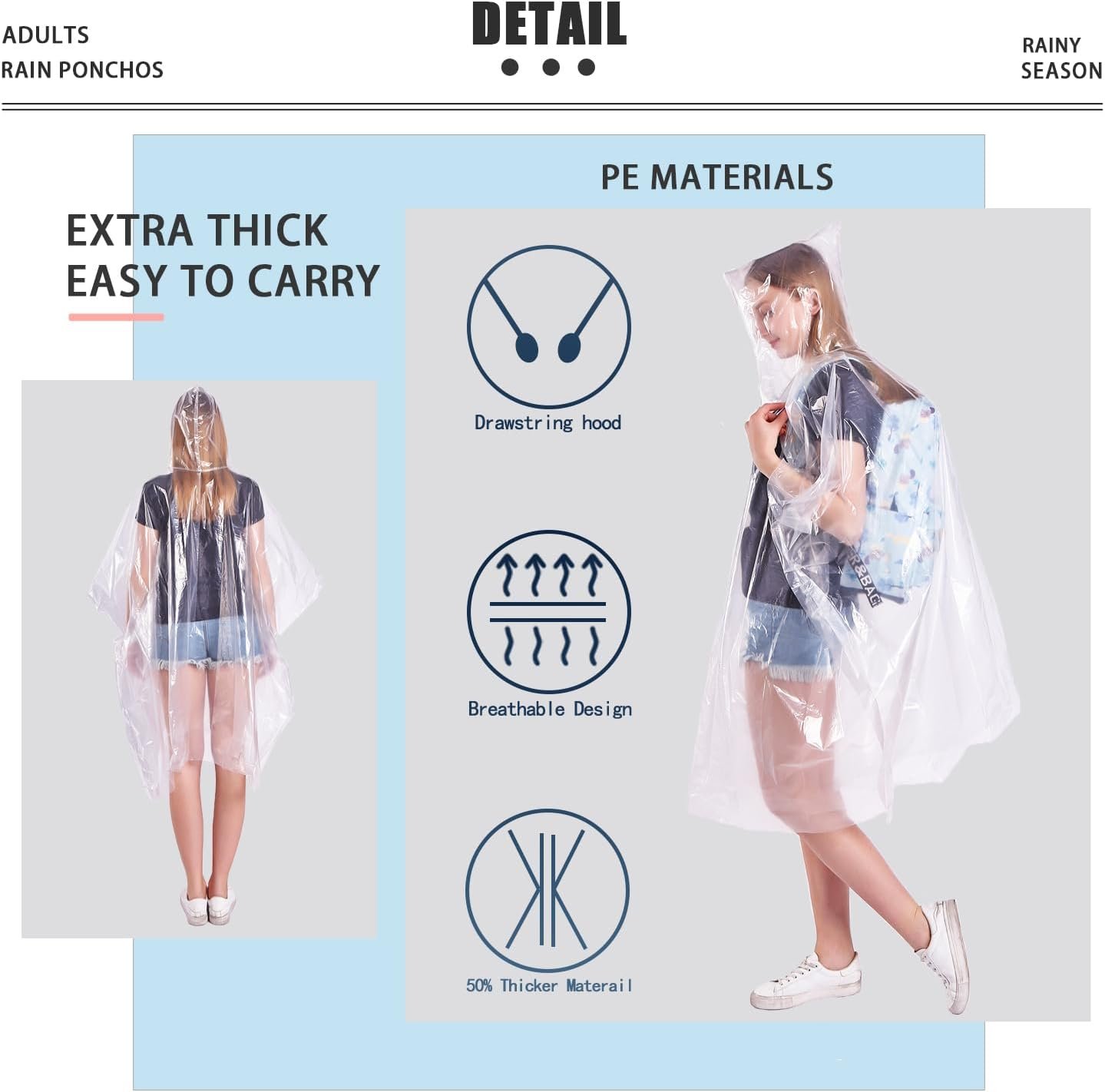 Disposable Rain Ponchos 6 Pack for Adults/Kids/Family Set-50% Thicker Emergency Ponchos
