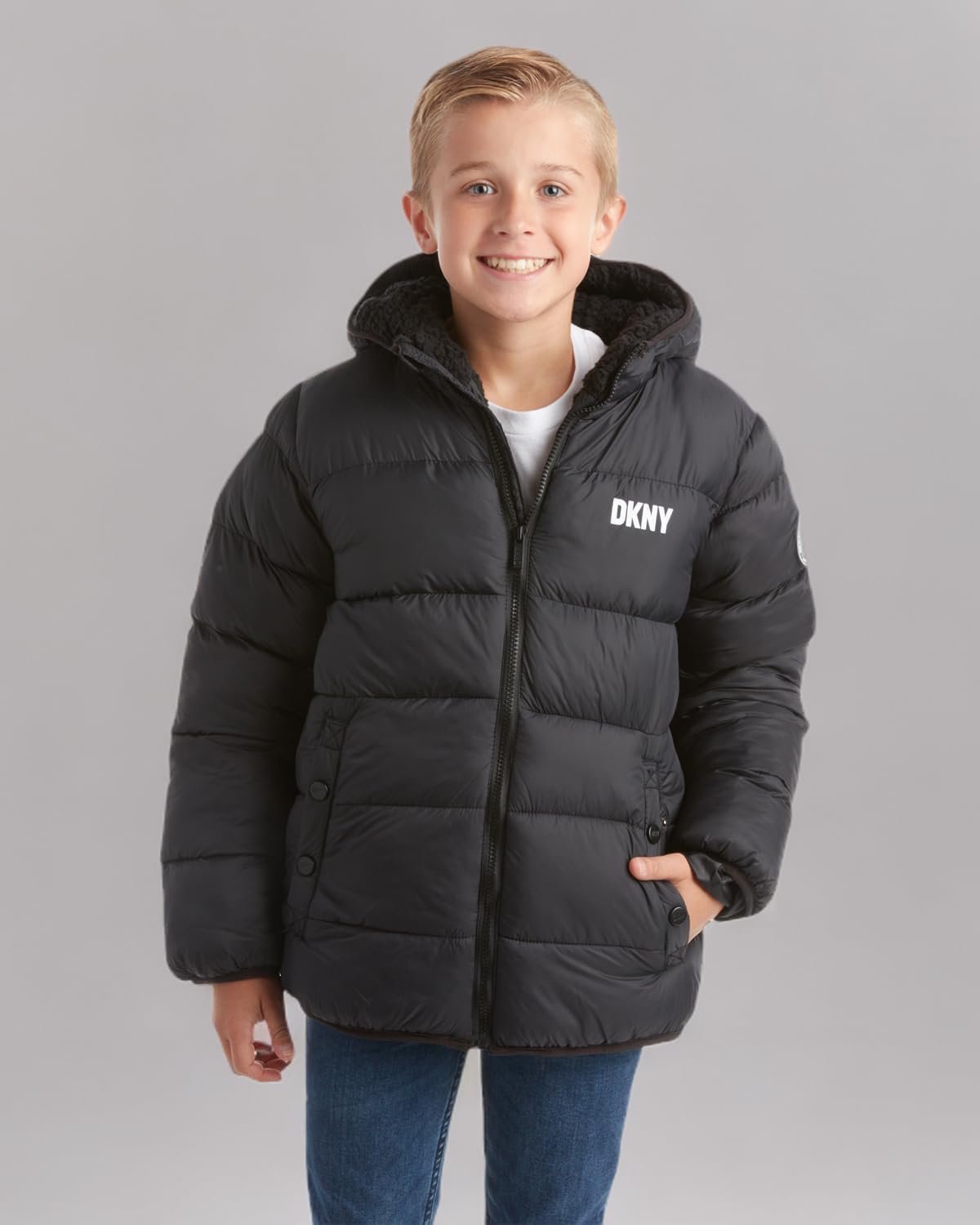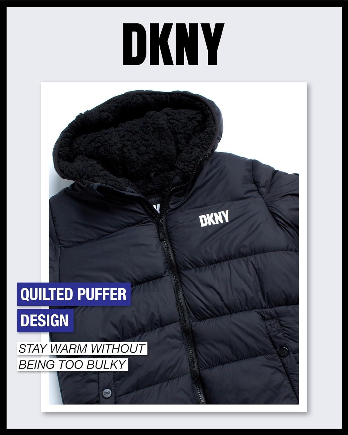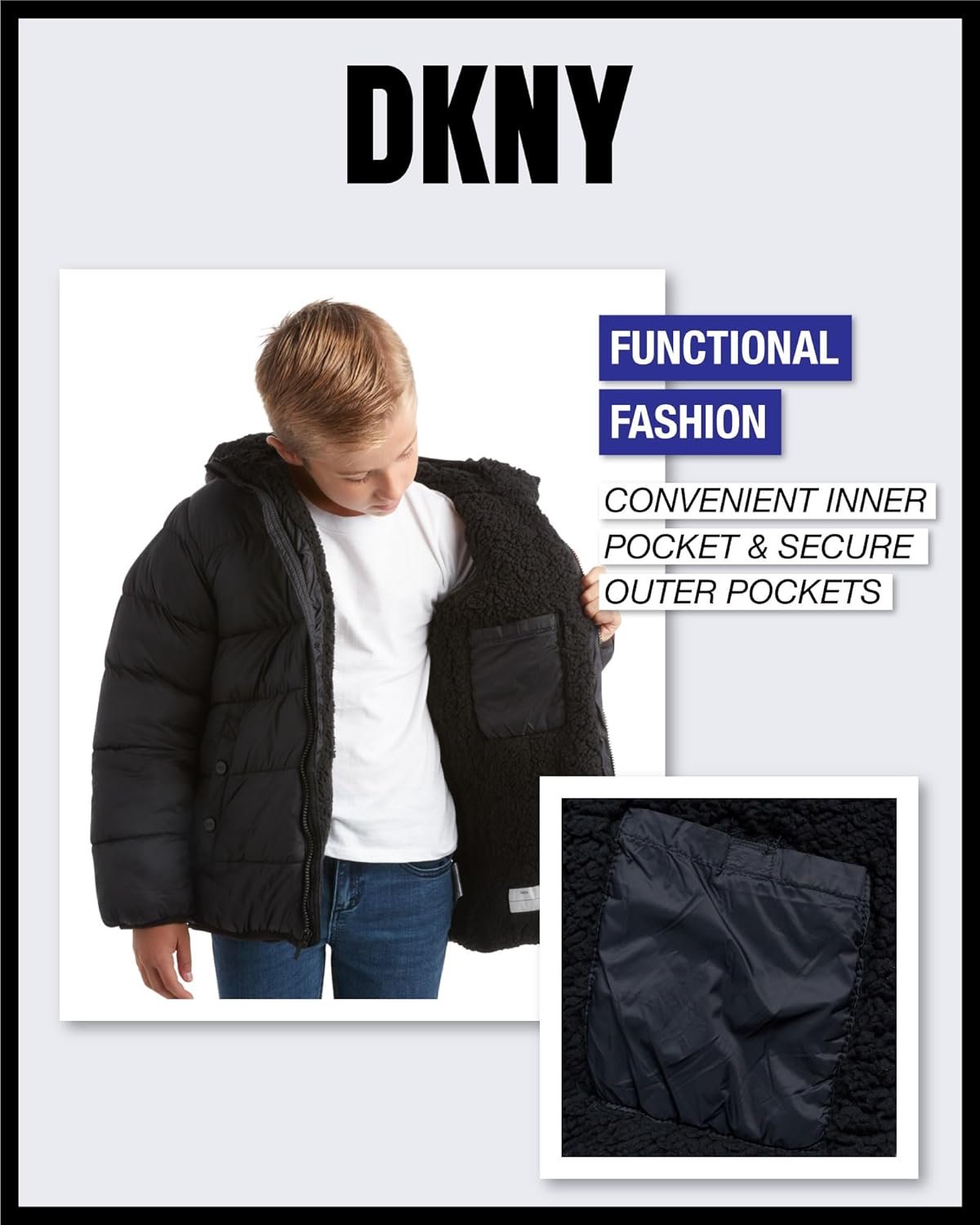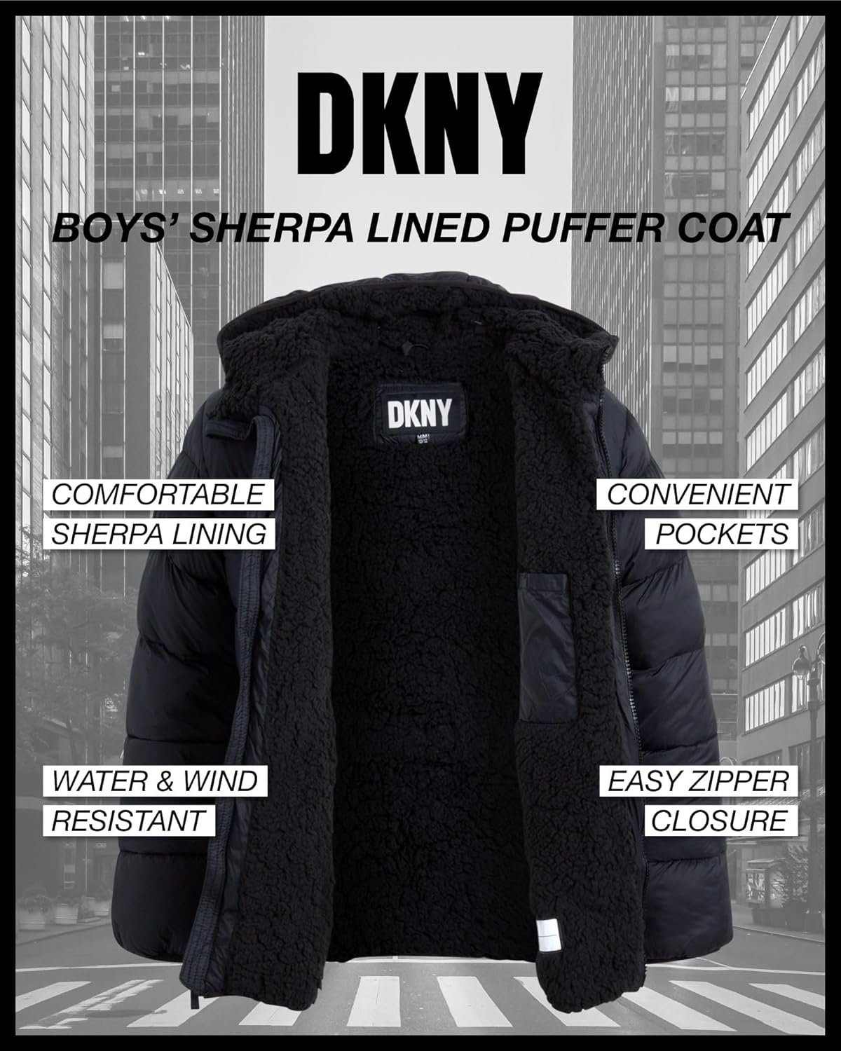 DKNY Boys’ Winter Jacket – Heavyweight Sherpa Lined Bubble Puffer Coat with Convenient Pockets – Jacket for Boys (Size: 4-20)