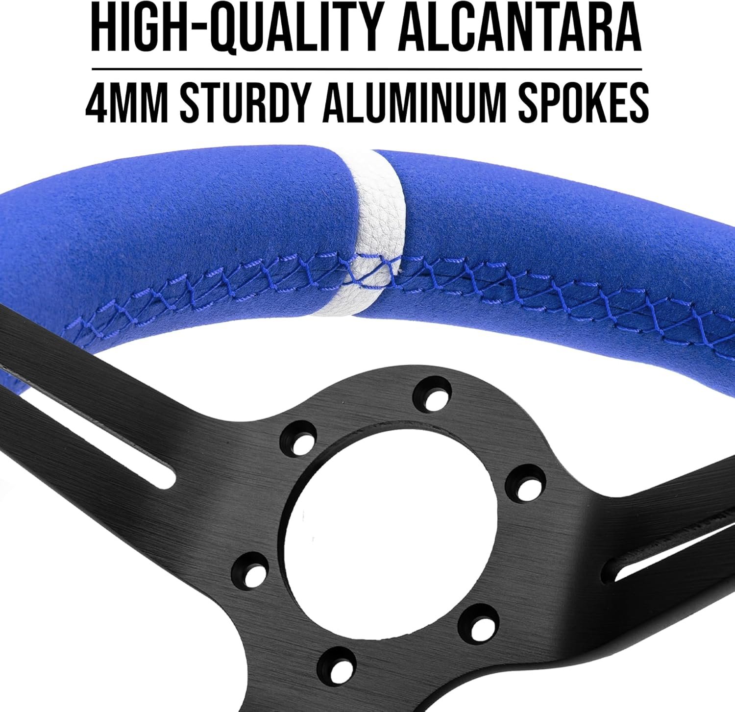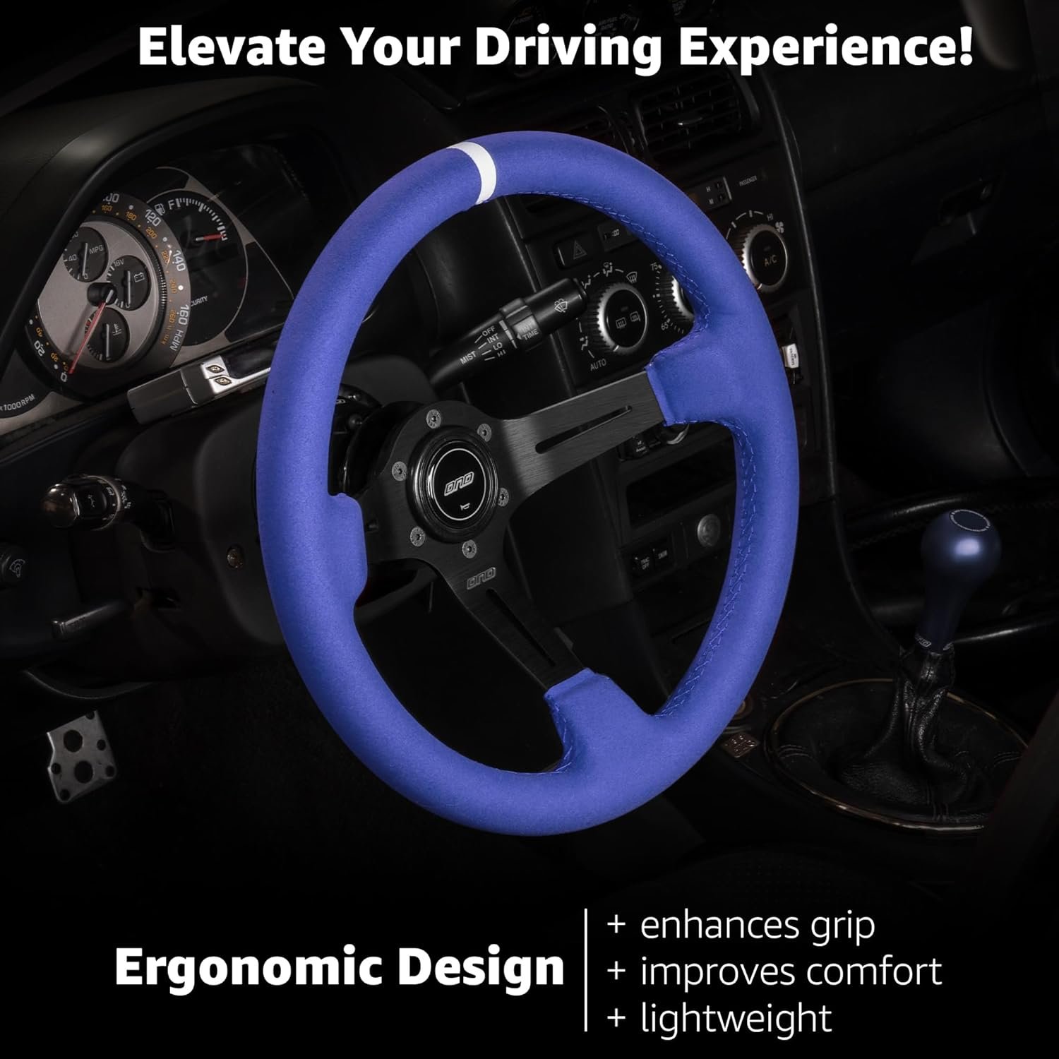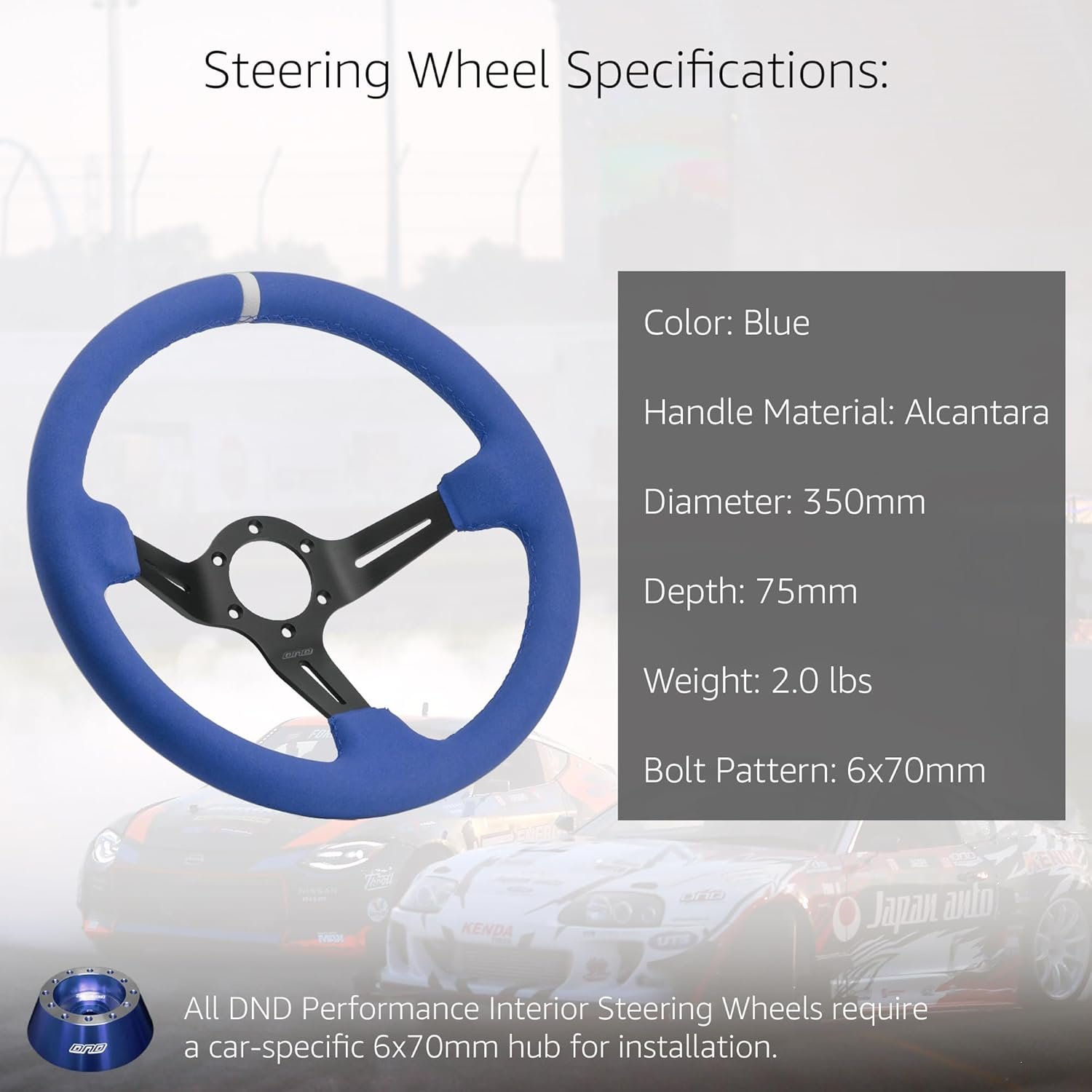 DND Performance Interior’s Full Color Suede Race Wheel / 350mm Diameter and 75mm Depth / 6x70mm Bolt Pattern/Suede Racing Steering Wheel with Horn Button Included (Blue)