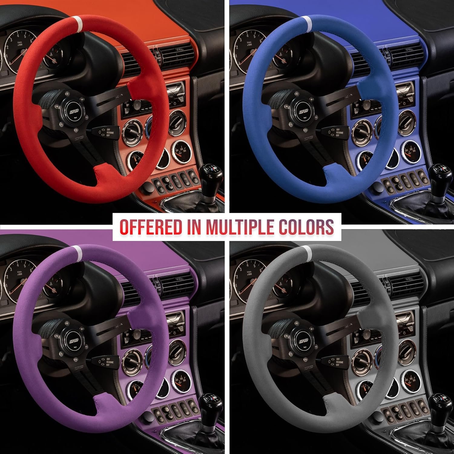 Premium Feel and Comfort – The high quality Suede material provides a consistent and reliable grip, even in wet or sweaty conditions, ensuring better control during intense driving sessions. Whether you’re racing, showcasing your car, or daily driving, this steering wheel delivers on all fronts.
