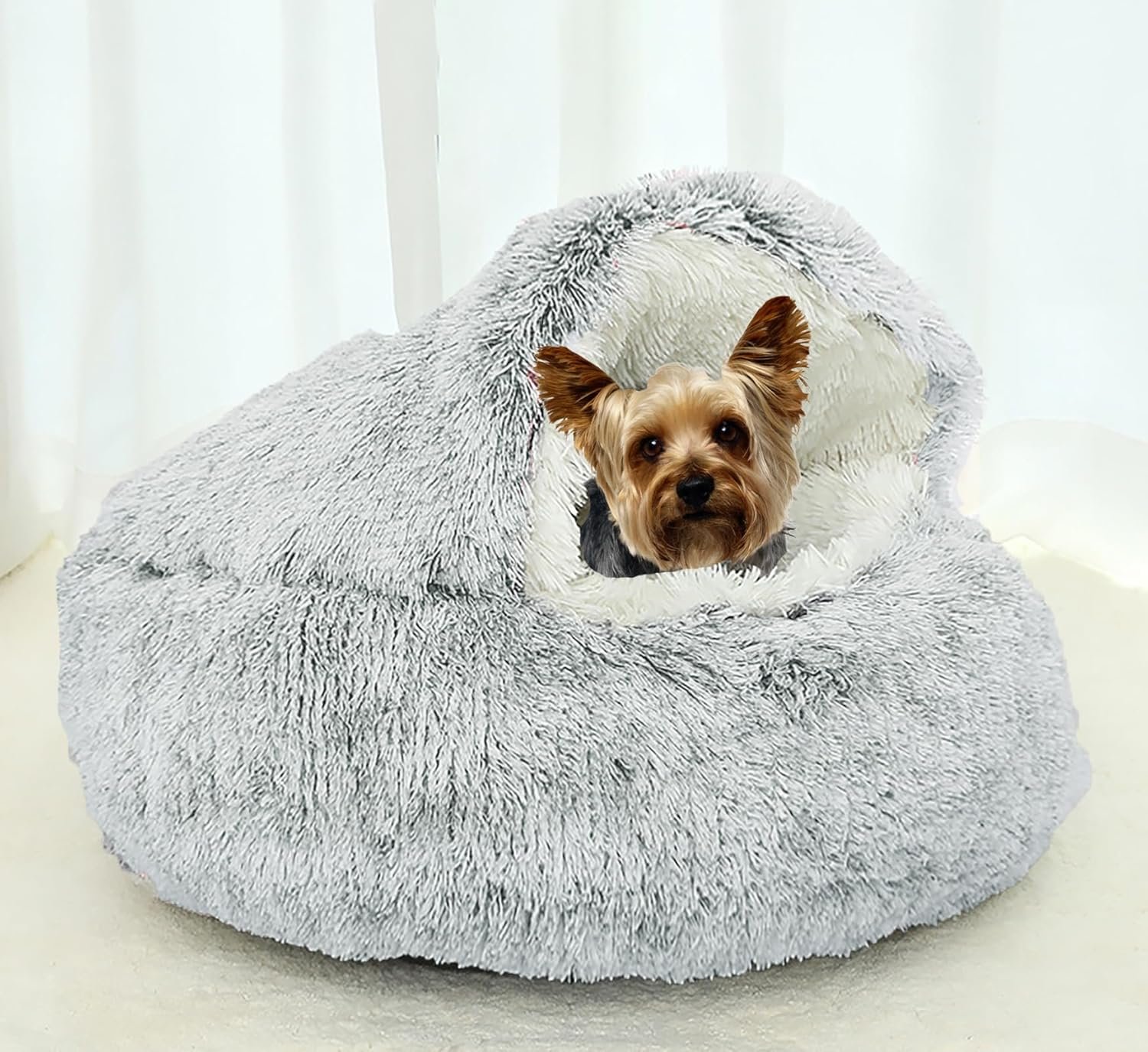 NTUQCAW Dog Cave Bed for Small Dogs Cats Pets Anti Anxiety Calming Plush Dog Beds Fluffy Covered Hooded Cozy Burrow Puppy Beds