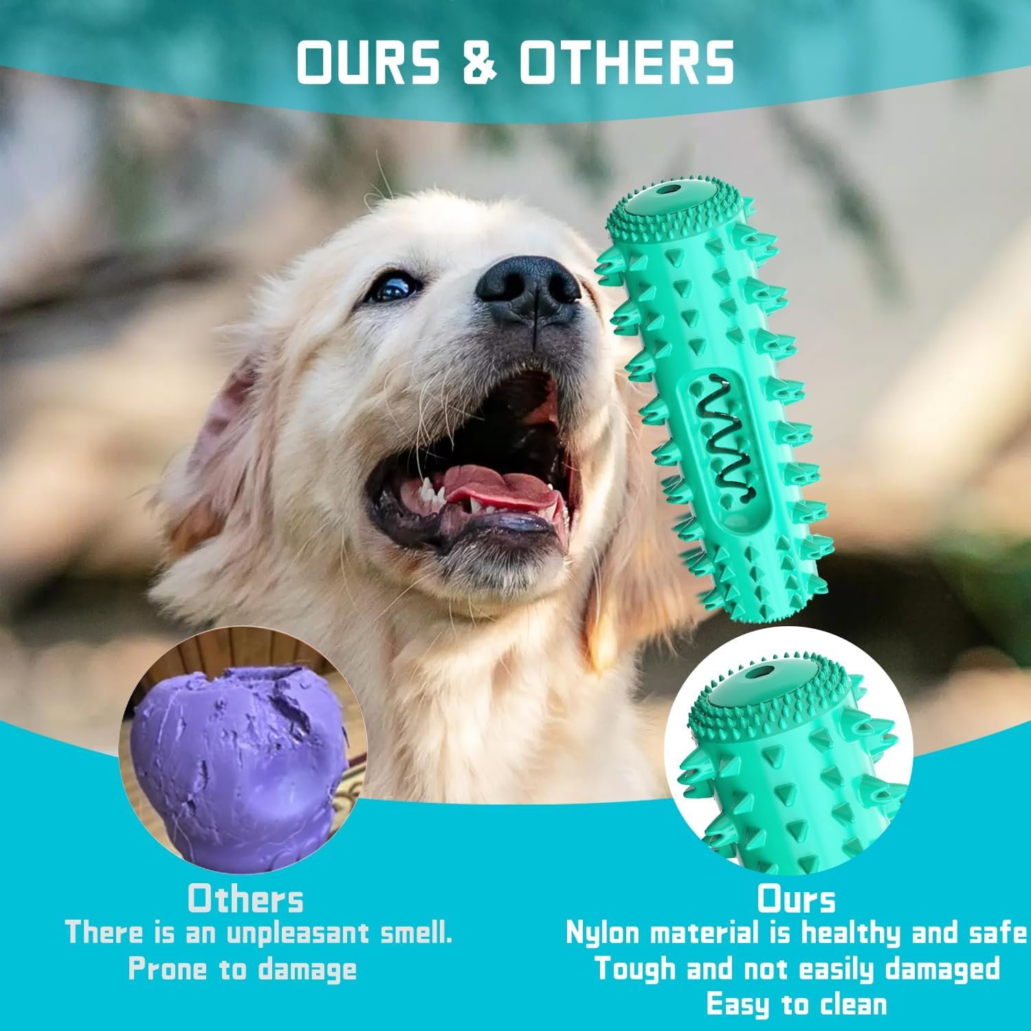 Our dog chew toy has a squeaker design that dogs love, the fun sound can attract their attention and make them happier to play. Not only that, this dog toy is easy to clean up, which can make it easier for dog owners to take care of it, saving time and energy!