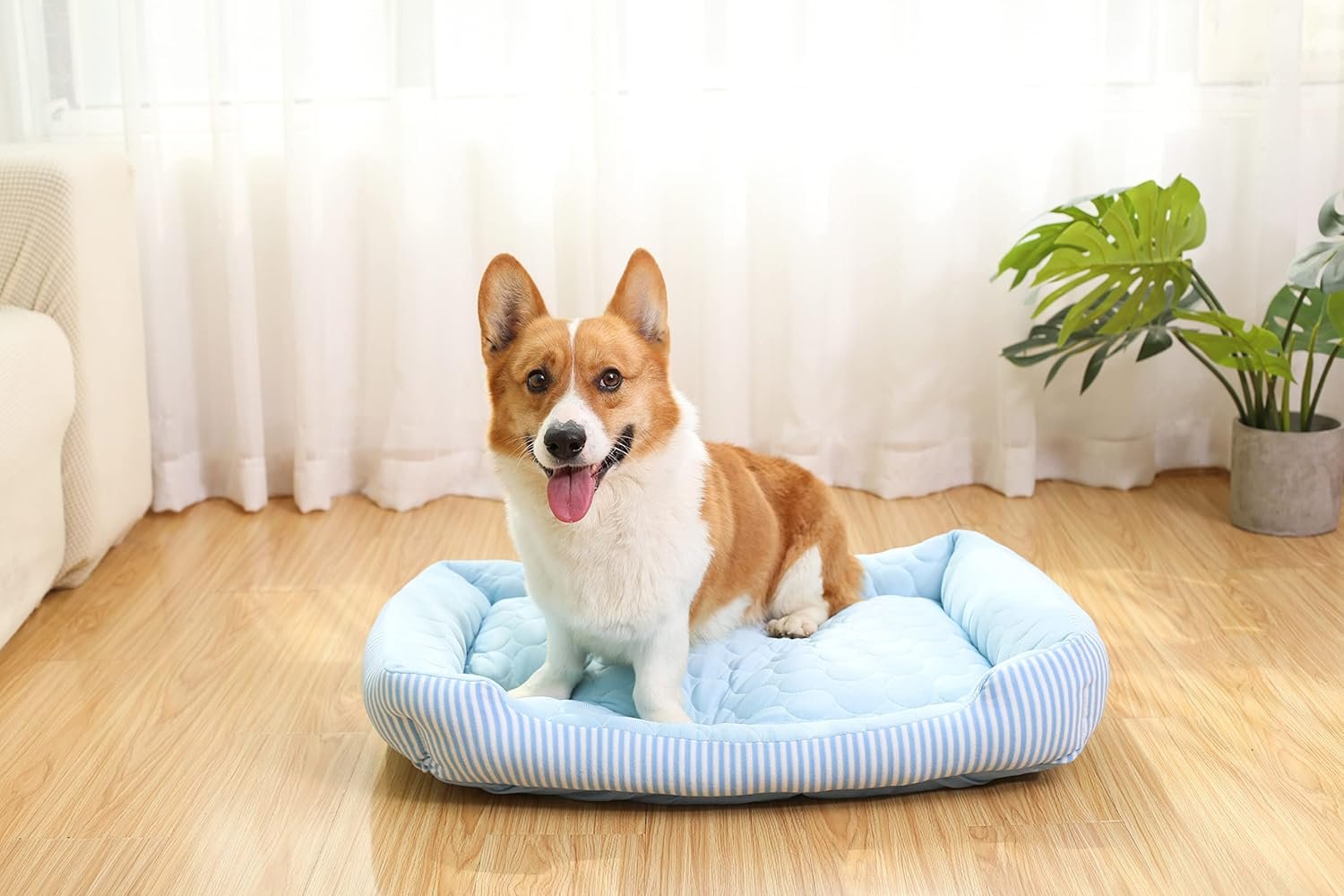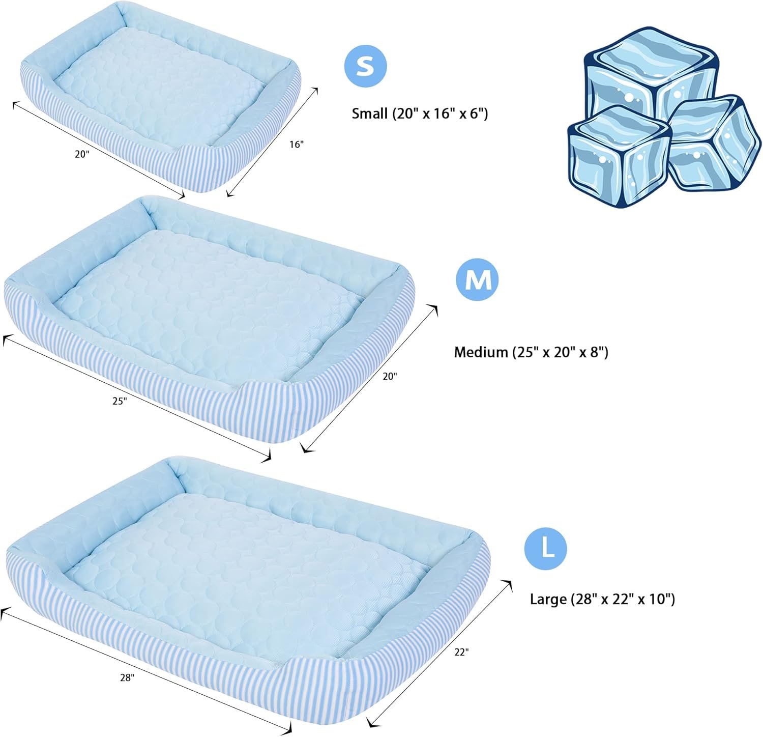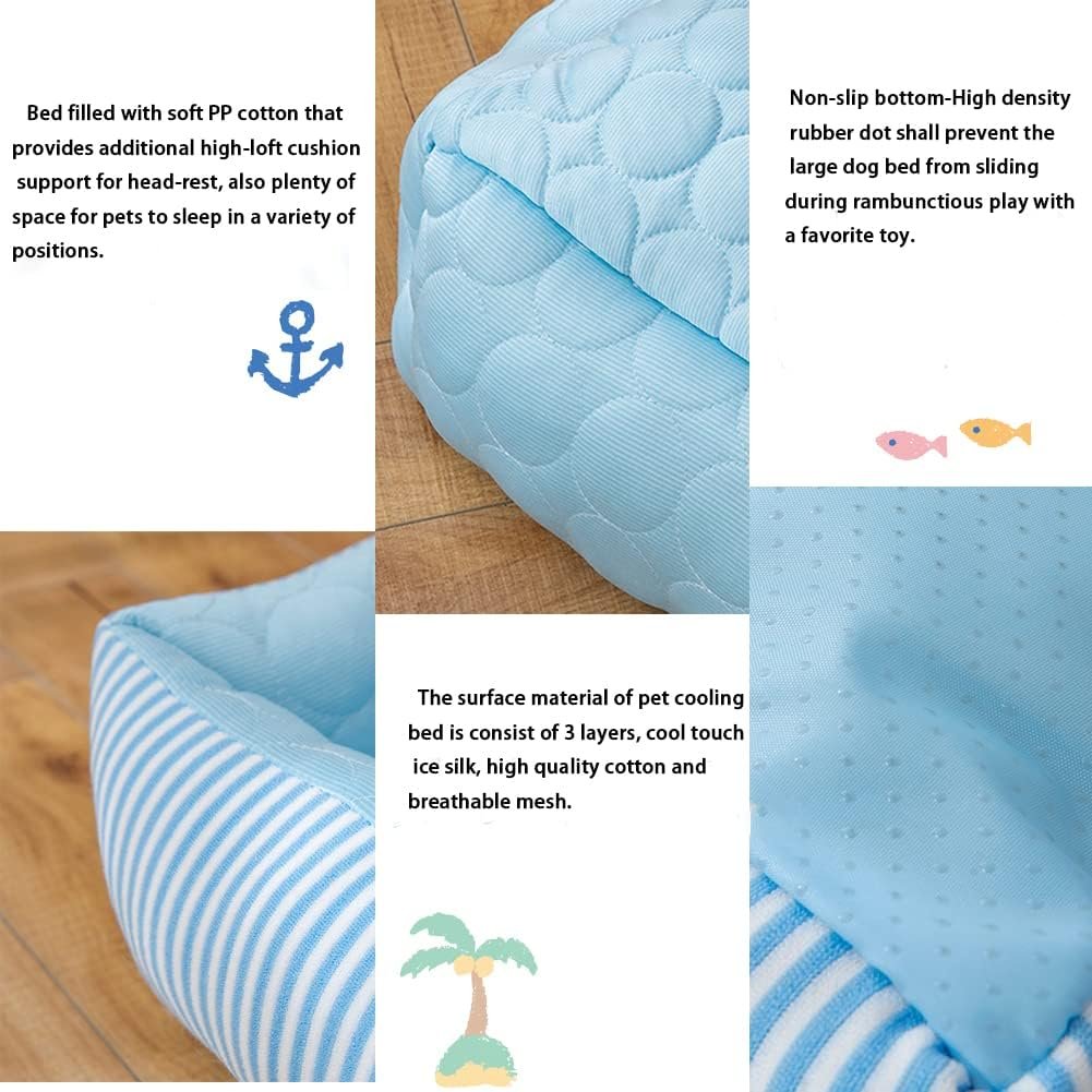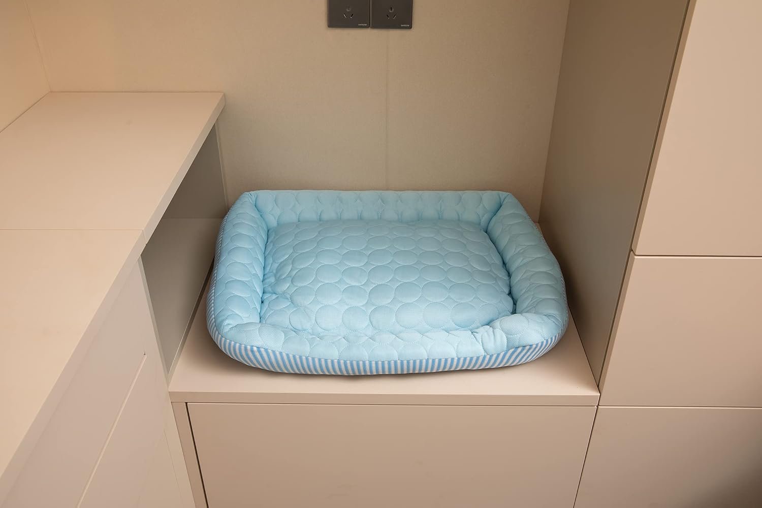 Dog Cooling Bed Summer Sleeping Cool Ice Silk Bed for Small, Medium, Large Dogs & Cats Breathable Washable Pet Beds with Non-Slip Bottom Blue Small