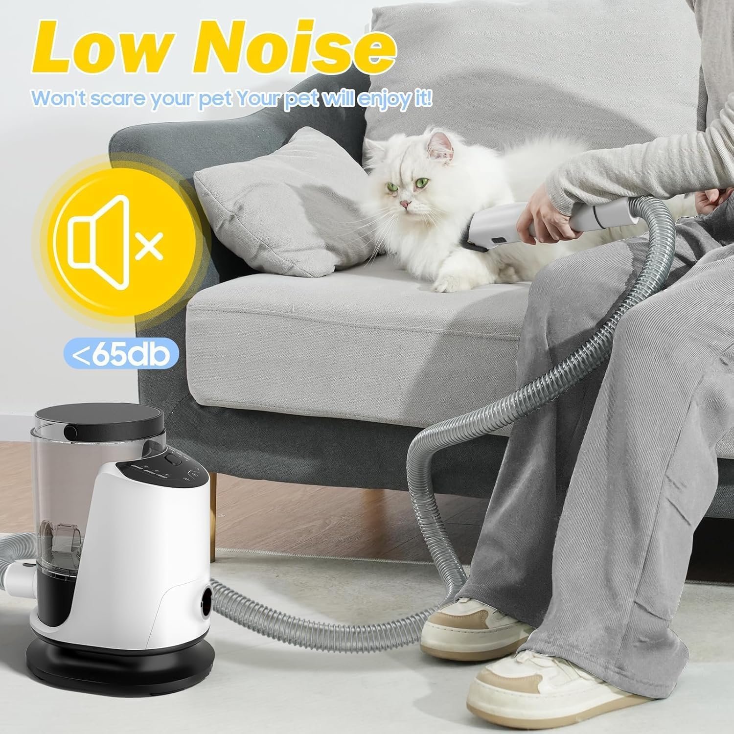 Low Noise Design: Our pet grooming vacuum have a minimum noise level of less than 65 decibels, and we recommend brushing your pet’s coat with our brush before trimming it, treating your pet with a small snack and avoiding stressing your pet with the noise of the vacuum cleaner, which will undoubtedly make the pet grooming experience more enjoyable.