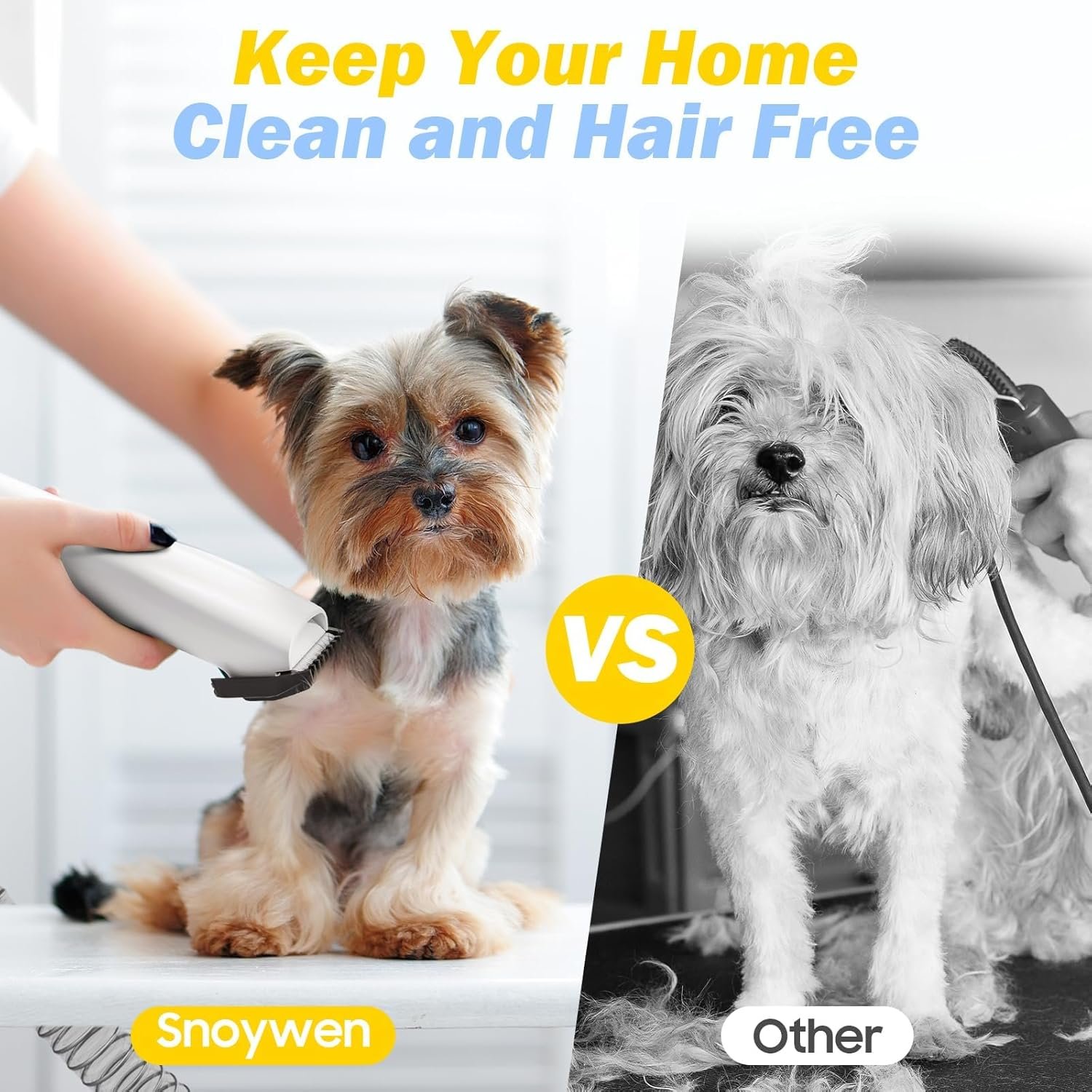 Powerful Vacuum Suction 99% Pet Hair: The Snoywen pet grooming kit is equipped with a powerful vacuum of up to 12000pa that sucks up to 99% of pet hair and dander into the dust collection cup while grooming your pet. Pet hair will not be scattered all over the house. There is no need to clean up the work area afterwards.