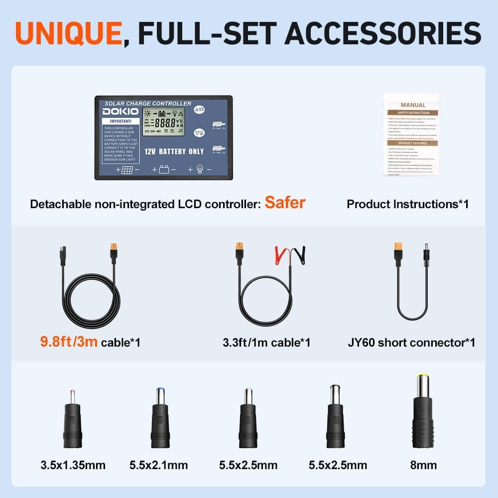 【XT60 EXTENSION CORD AND BRACKET】– If you want to find additional extension cord and support bracket for your DOKIO solar panel (not suitable for rigid panels) – (Please enter DOKIO store)