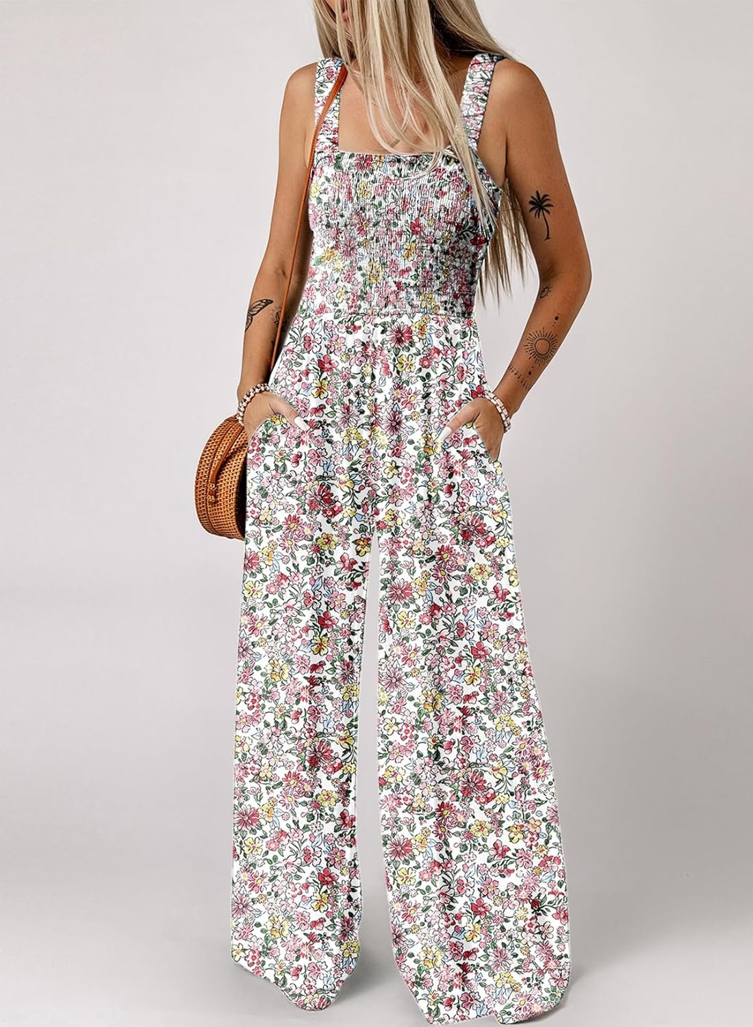 Dokotoo Womens Wide Leg One Piece Sleeveless Printed Jumpsuit Long Pant Rompers