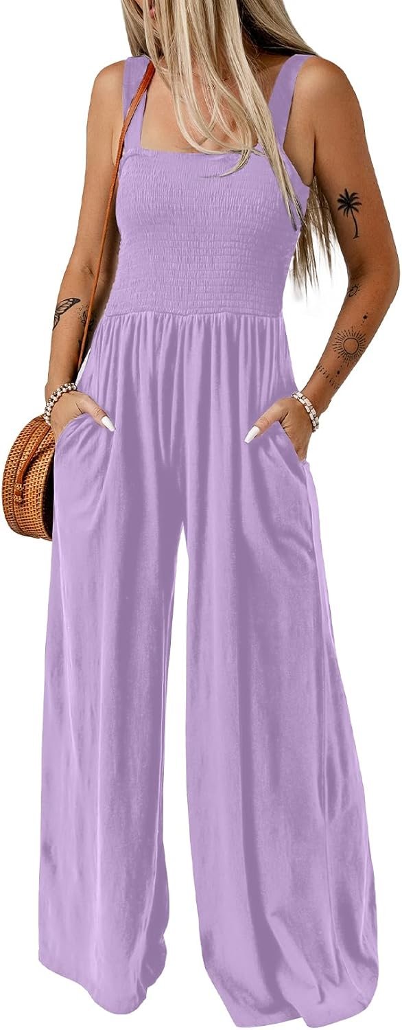 Customers find the jumpsuit flattering as an outfit base that can be dressed up or down, and appreciate its comfort with soft material and lightweight, flowy bottom. The color options and pocket size receive positive feedback, with one customer noting it can be dressed up with pearls. The fit and material quality receive mixed reviews – while some find the length perfect, others say it’s very short waisted, and while some praise the fabric quality, others find it thin and sheer. The straps are criticized for being too close together and in the wrong places.