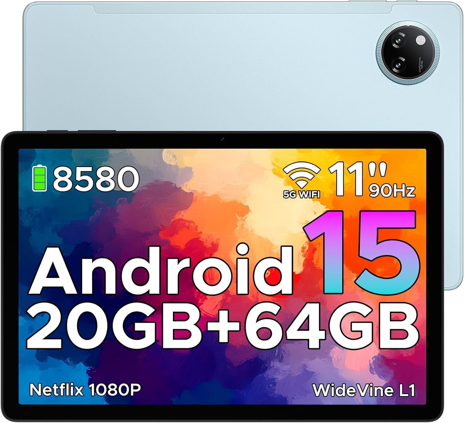 DOOGEE Tab A9+ 11 inch Tablet with 90Hz,8580mAh,20GB+64GB/2TB Octa Core Android Tablet,7.9mm Ultra Thin Gaming Tablets,13MP+5MP,Dual Speakers,Bluetooth 5.0,Face ID,5G WiFi,FM,Widevine L1,GPS,Blue