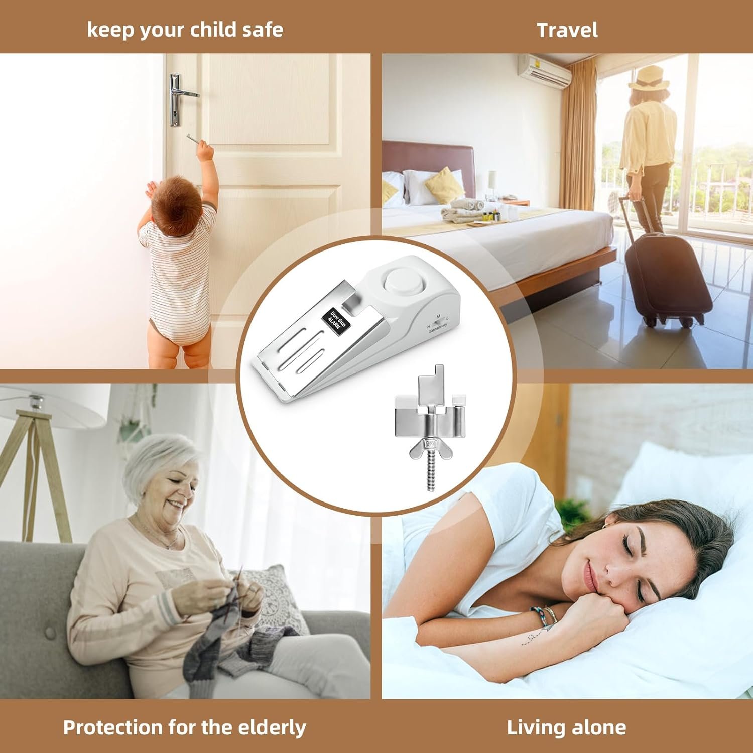 【Safe Travel Gift】This Douevo hotel door locks for travelers & door stop alarm wedge Safety Set is a great gift for single women, elderly parents and travel enthusiasts. Especially suitable for people who travel frequently. Whether at home, in a hotel or traveling, Douevo door stop alarm can help you provide double extra security and privacy protection, and is a good helper when you live alone at home or travel on business.