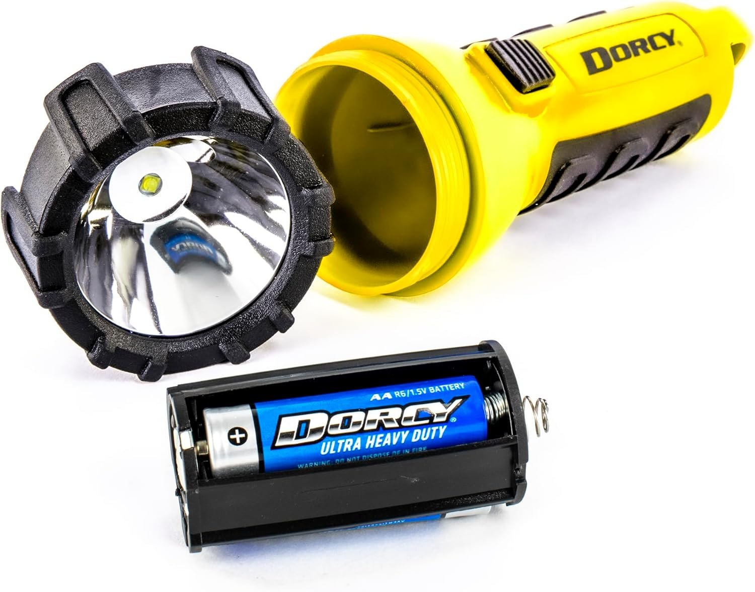 The Dorcy 3AA 4 LED Incredible Floating Flashlight has a waterproof design with float-ability. Features include 55 lumens of light output, a beam distance of 31 meters, and a run time of over 8 hours. Shock absorbing rubber around the head and body allows for a slip-free, comfortable grip, ensuring stability and durability. The Incredible Floating Flashlight has a unique built-in tail cap carabiner clip and comes complete with 3 AA cell batteries.