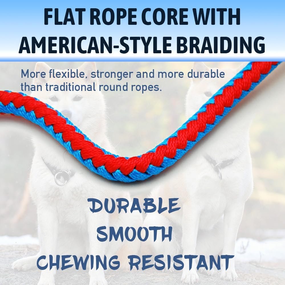Made from soft polypropylene.The flat rope with an American-style weave is stronger and more durable than traditional round ropes, resistant to wear and chewing.Flexible and smooth, it prevents fraying and is easy to use.