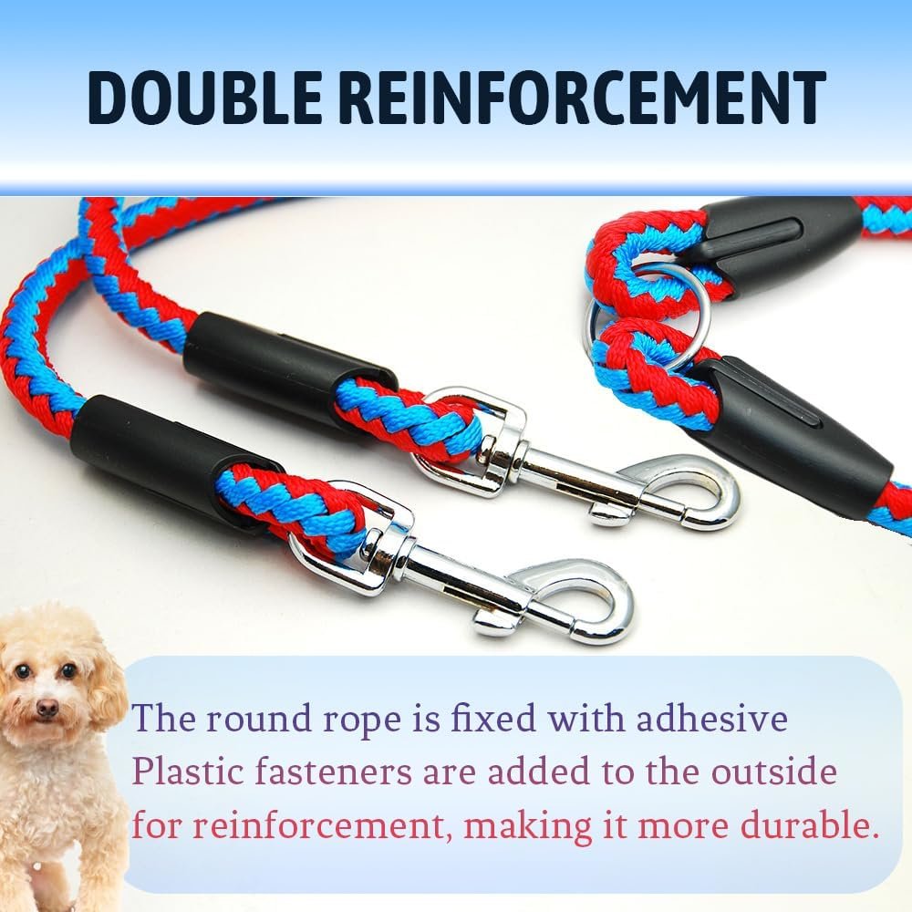 Double Dog Leash for Two Dogs – No-Tangle Dual Leash with Chew-Resistant Braided Rope & Zinc Alloy Clips – Durable No-Pull Design for Walking, Training & Outdoor Use