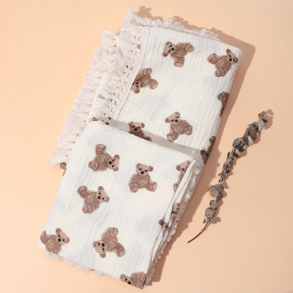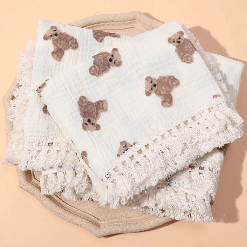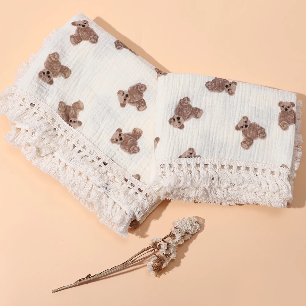 Double Guaze Print Tassel Swaddle Blankets For Baby Cotton Muslin Breathable Bath Robe Children Toddler Stroller Cover Blankets