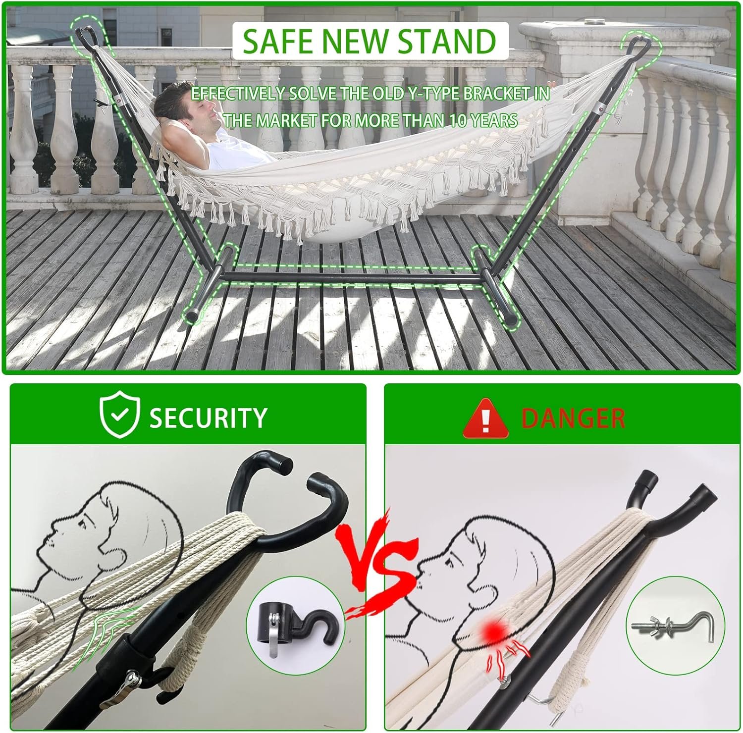✅【Safety new stent 】Effectively solved the market for more than ten years Y type old stent, sharp hook front perforation, straight hit the head (dangerous) problem! The new face holder is made of nylon hook and perforated side to protect our head from injury to our family and children.