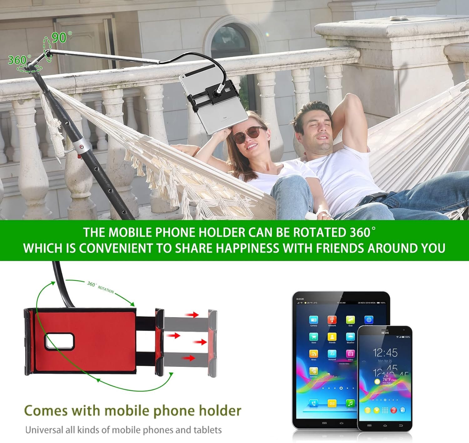 ✅【 Intelligent design 】 The new smiley hammock bracket is equipped with a lazy mobile phone bracket, which can clip tablets and mobile phones and quickly liberate hands. The mobile phone stand can rotate 360 degrees, which is convenient for sharing happiness with friends around. Watch movies, live stream, read, relax and rest. The phone holder can be easily retracted and does not take up space when idle.