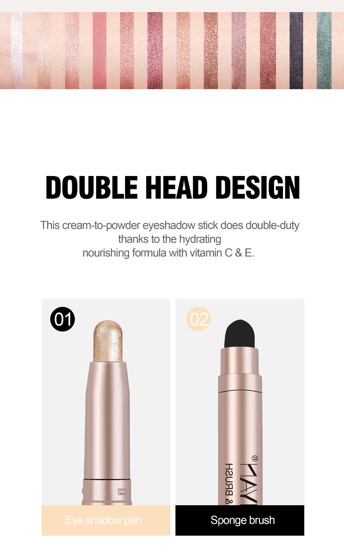 13 reviews for Double-head Eyeshadow Stick Diamond Shimmer Highlighter Pencil Pearl Pigment Long Lasting Cream Eye Shadow Matte Brush Pen