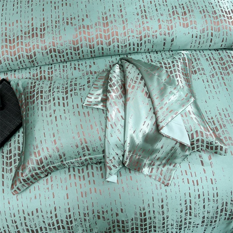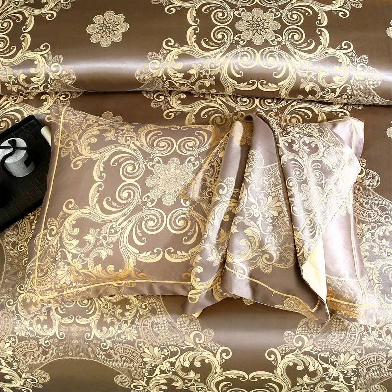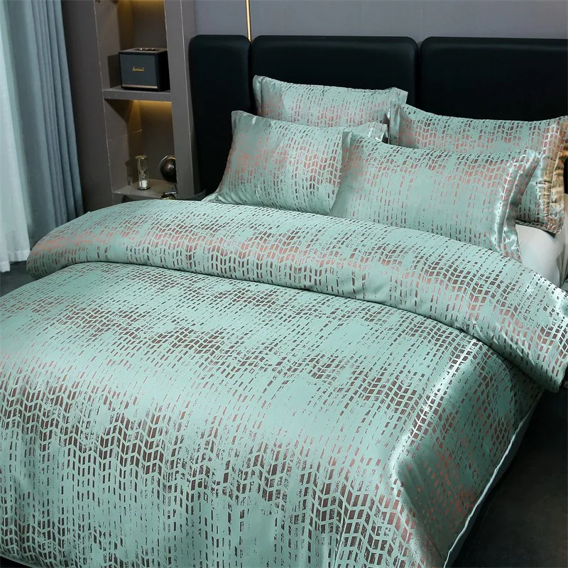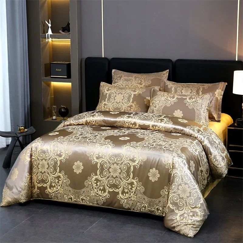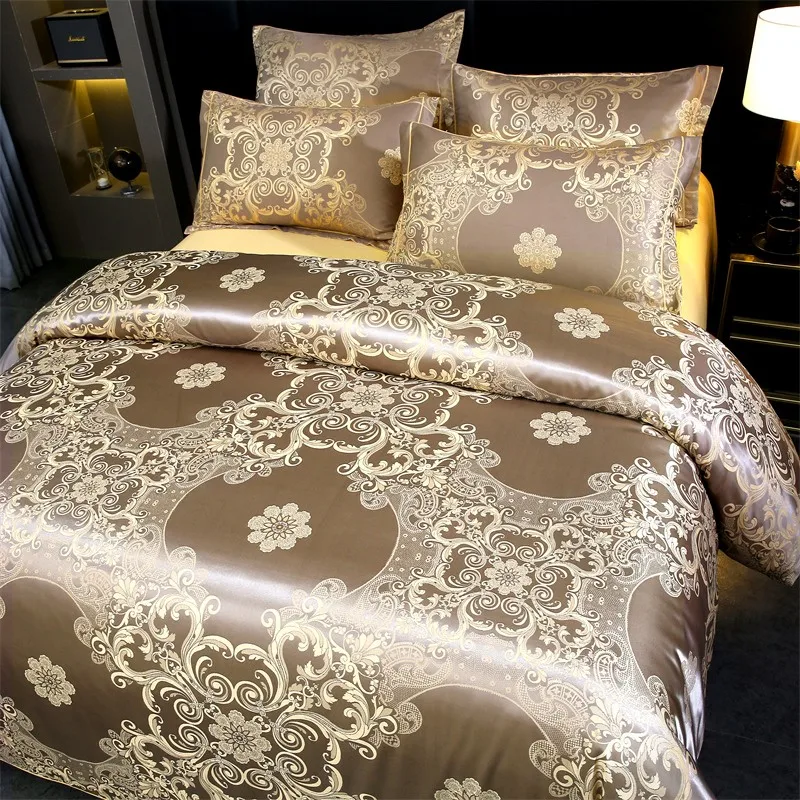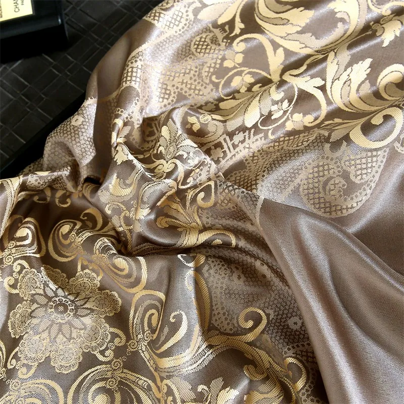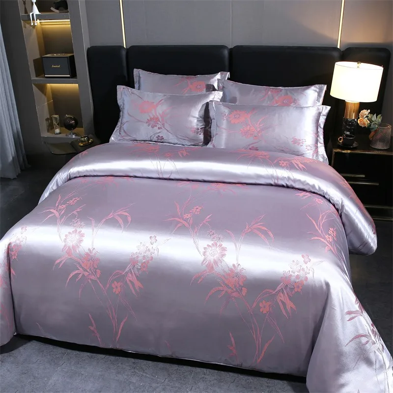 Double Queen Damask Jacquard Satin Duvet Cover 4Pcs Luxury Silk Like Bedding Comforter Cover with Zipper 1Bed Sheet 2Pillowcases