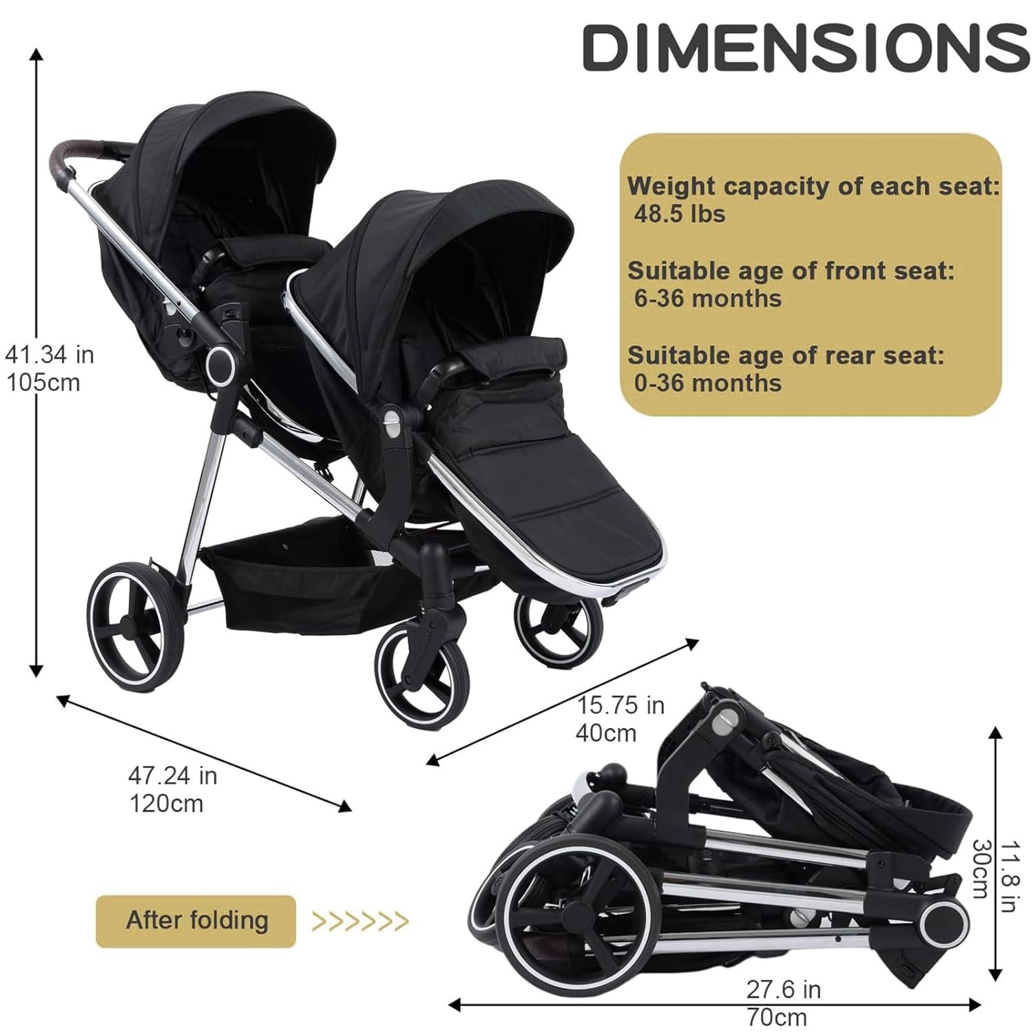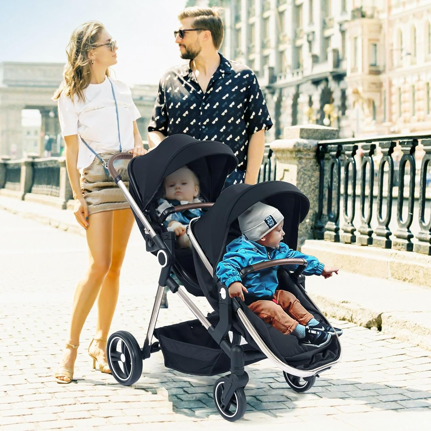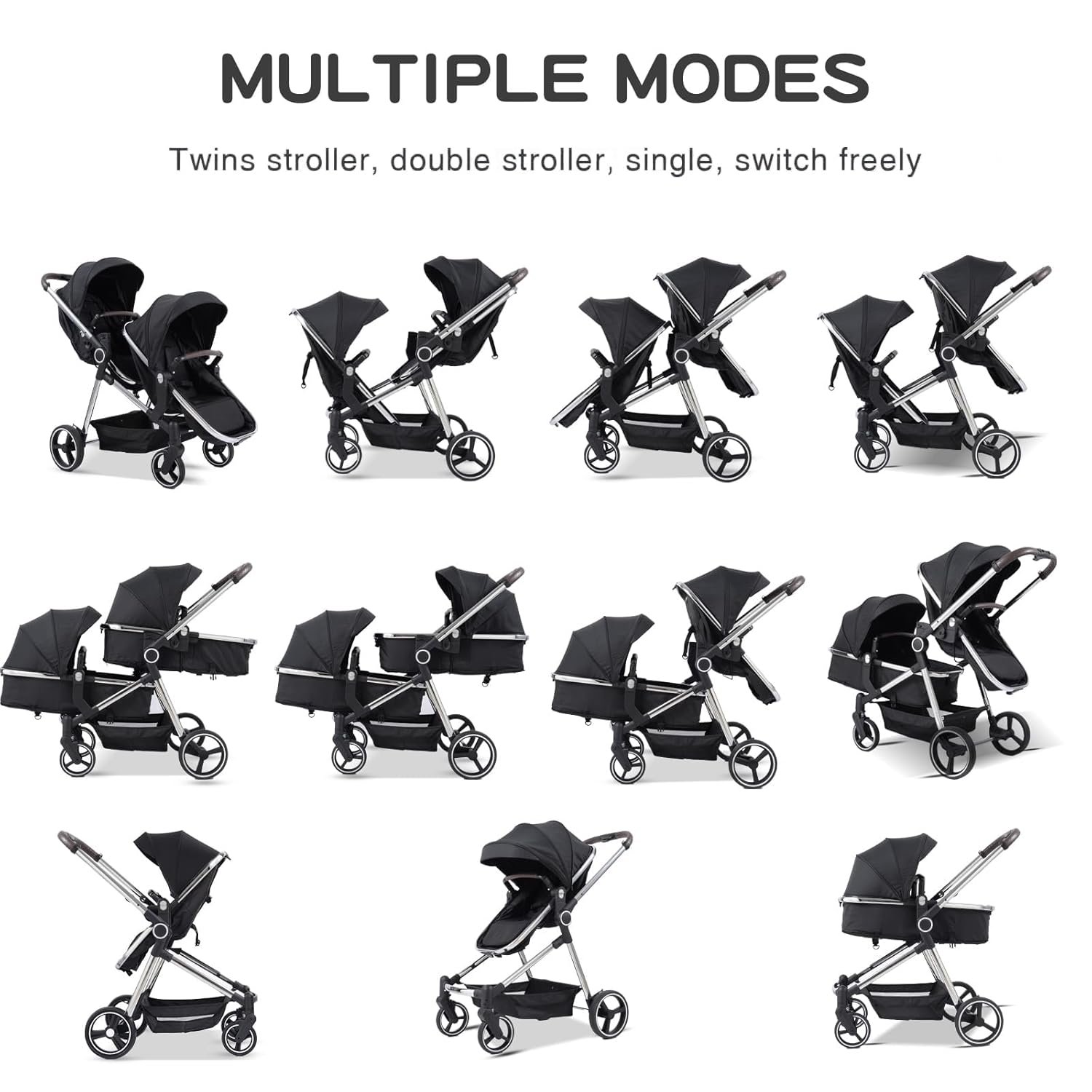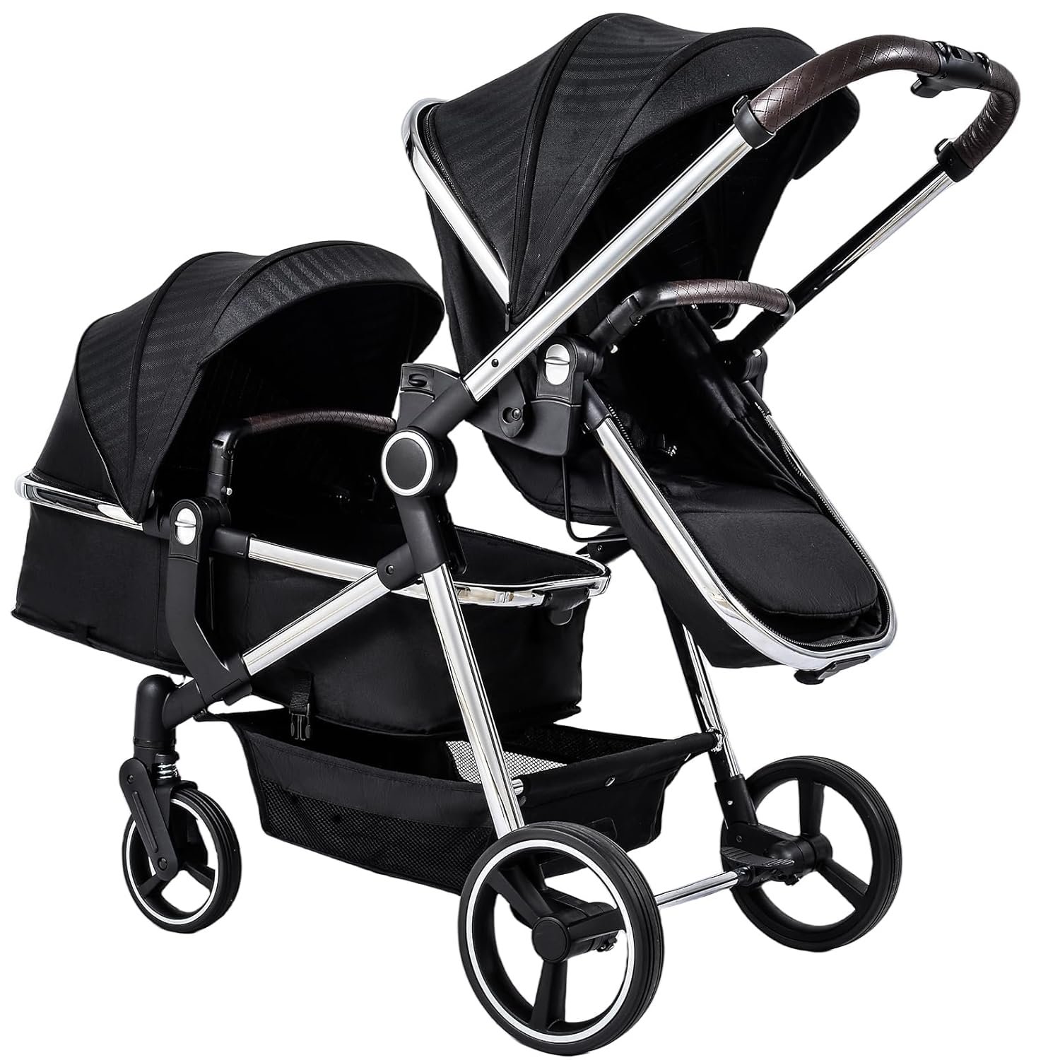 Versatile Bassinet Modes: Designed for newborns and toddler up to 36 months, the tandem stroller can be used as baby carriages or bassinets. The adjustable baskets can face the parent for easy interaction or face outward for your baby to explore the surroundings