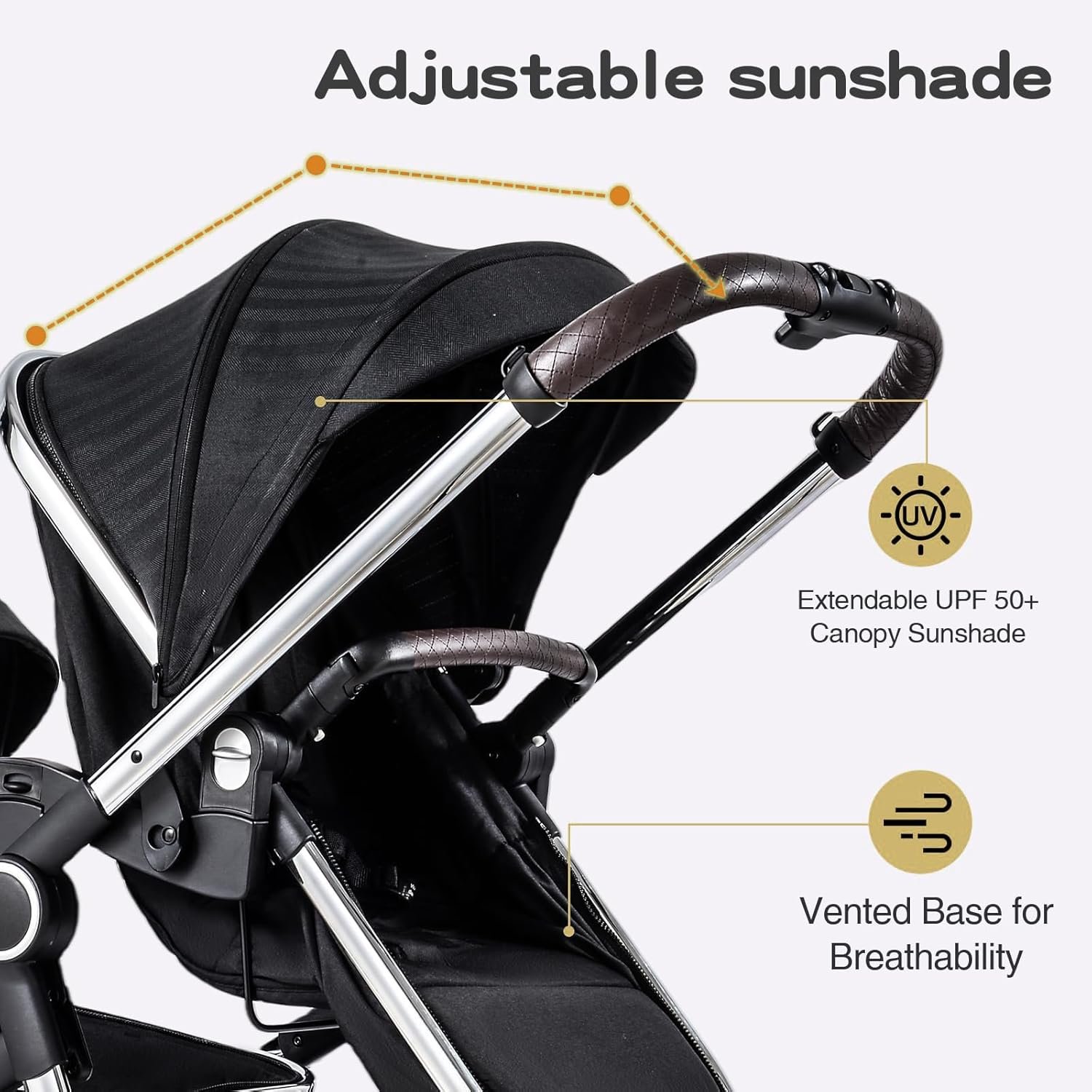 Sturdy Frame & Safe Material: Constructed with a lightweight aluminum frame, this stroller is durable and built to last. The high-quality 300D melange fabric is breathable and safe for your baby, ensuring safe and comfort during every outing