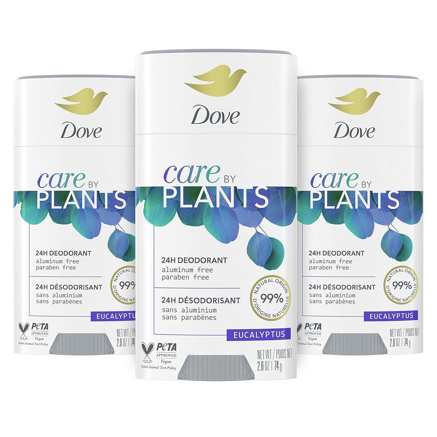 Dove Care by Plants Deodorant Stick for underarm skin care and 24 hour deodorant protection Eucalyptus no aluminum deodorant 2.6 oz 3 Count