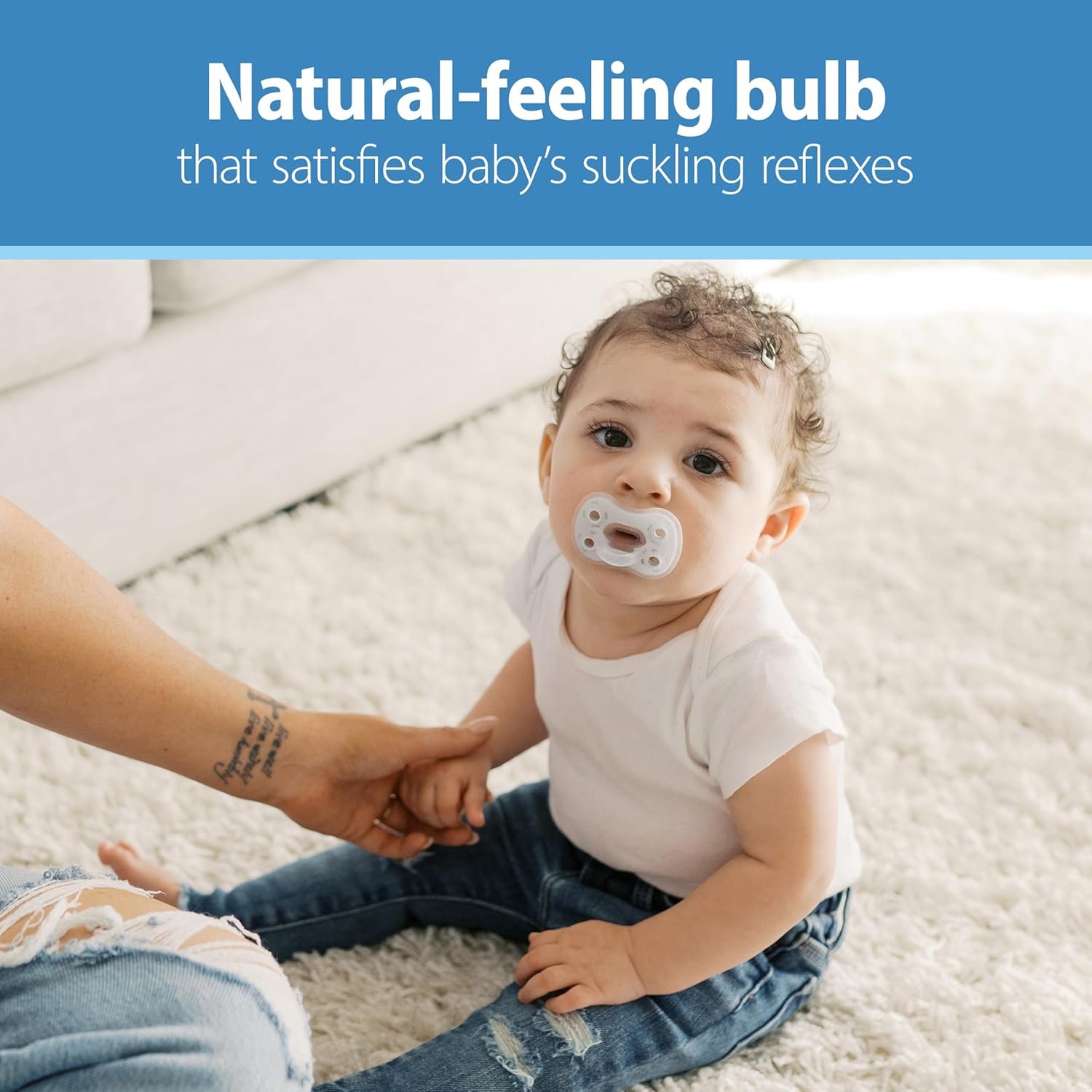 COMFORTABLE FEEL. Thin stem is minimally intrusive in baby’s mouth.