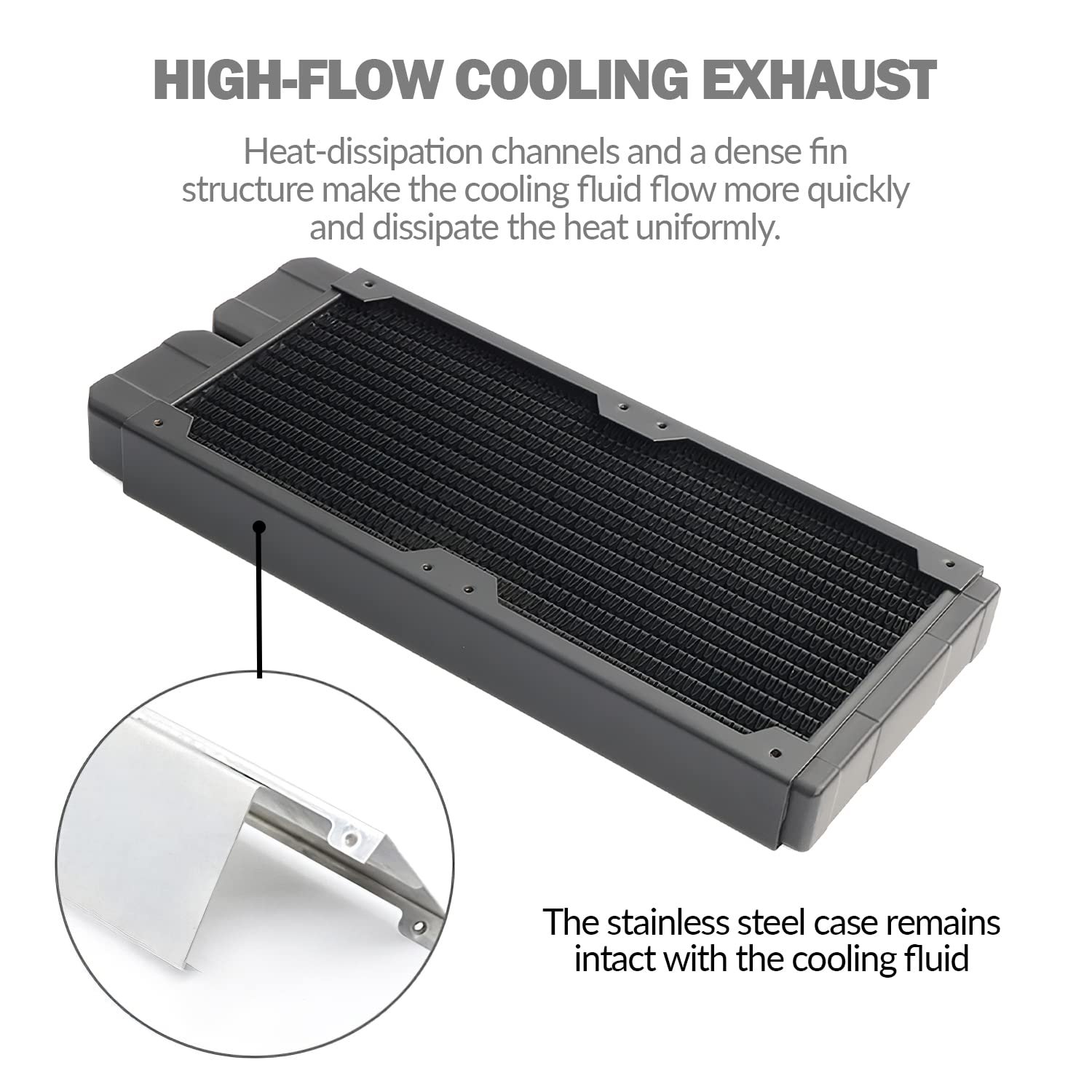 Thermal Efficiency: The 240mm radiator features black oxidation paint, enhancing both aesthetics and thermal efficiency.
