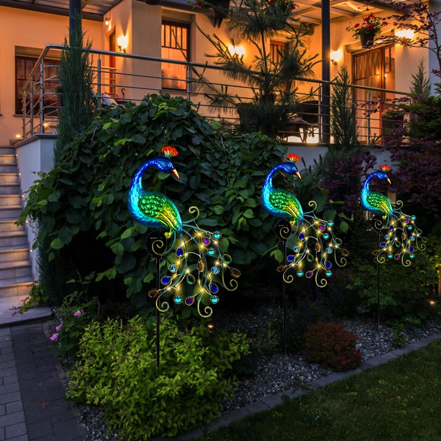 Long-lasting Garden Lights Peacock Decor: The peacock solar garden light is made of durable and sturdy metal iron with anti-rust paint coating treatment. IP65 waterproof rating, fade resistant, corrosion resistant, suitable for any outdoor environments, no worries about sun, rain, snow, etc